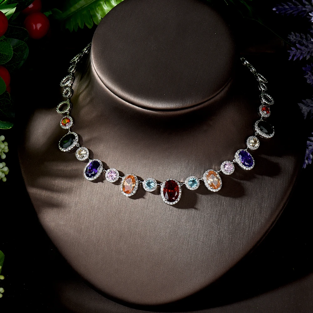 HIBRIDE Овальный Круглый Кубический Цирконий ожерелье серьги для же...