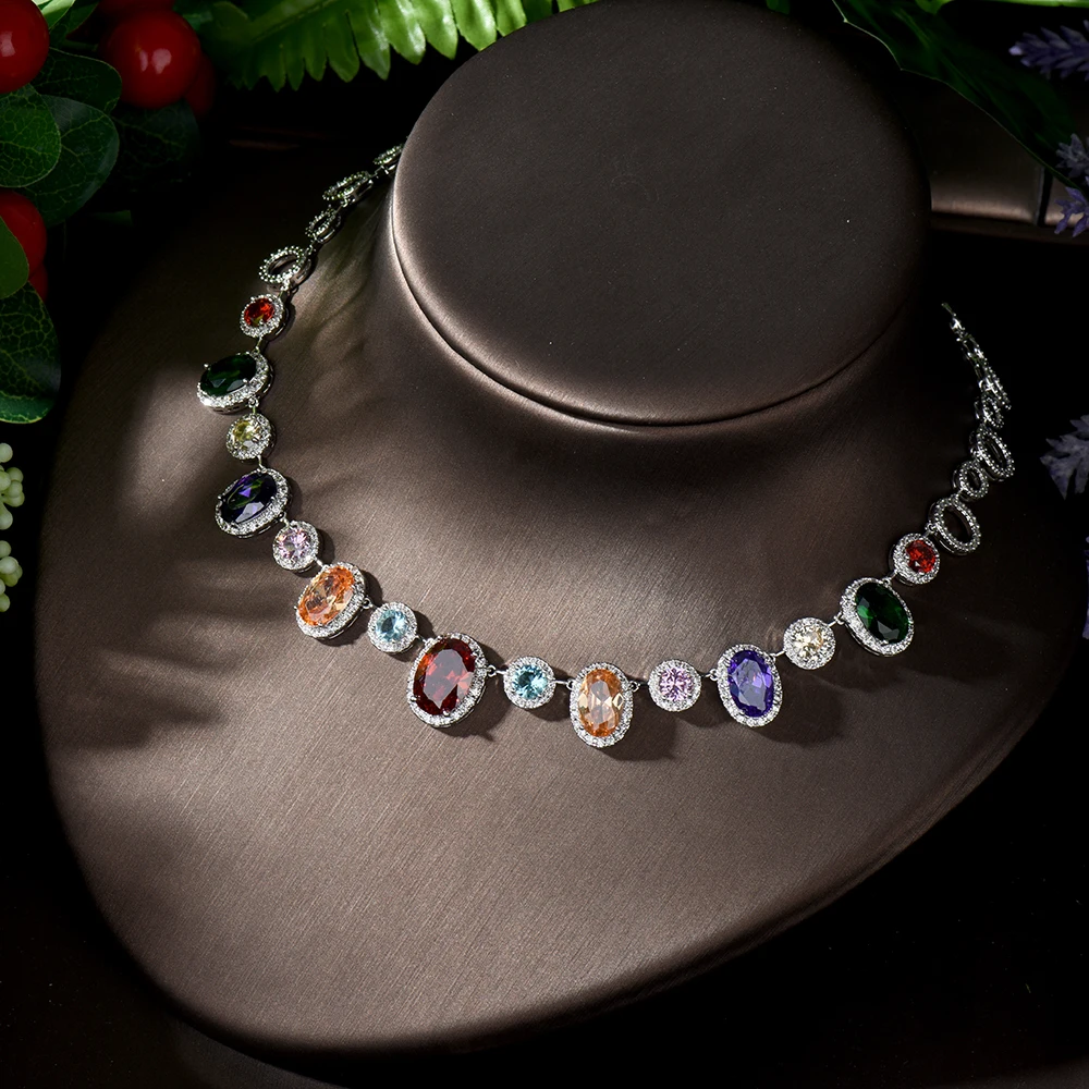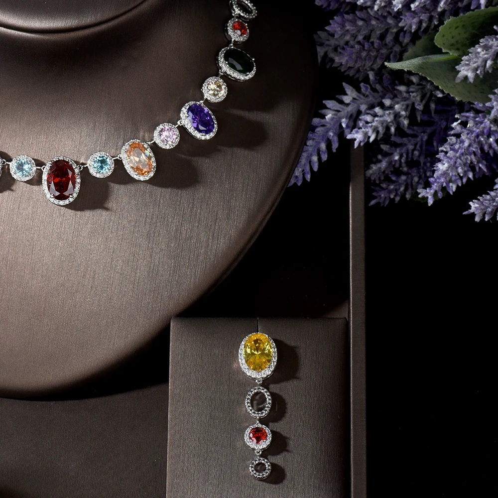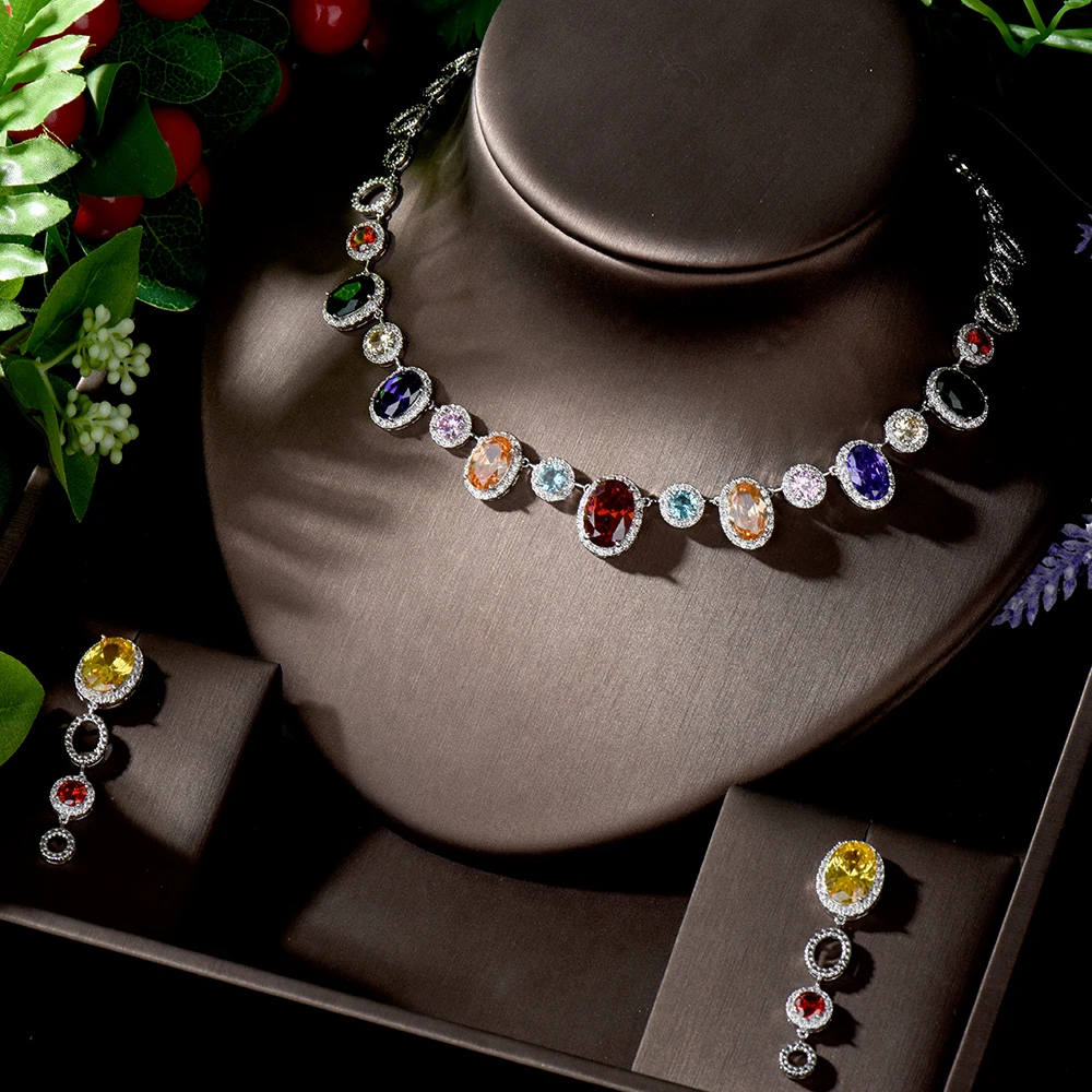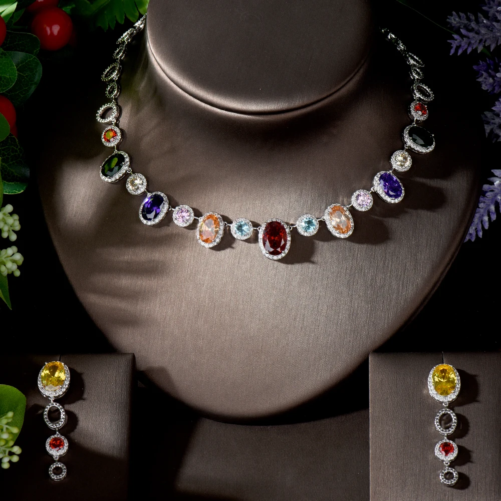 HIBRIDE роскошные кисточки капли Африканский большой кубический цирконий разноцветные Свадебные вечеринки невесты ожерелье и серьги Ювелирные наборы N-1255