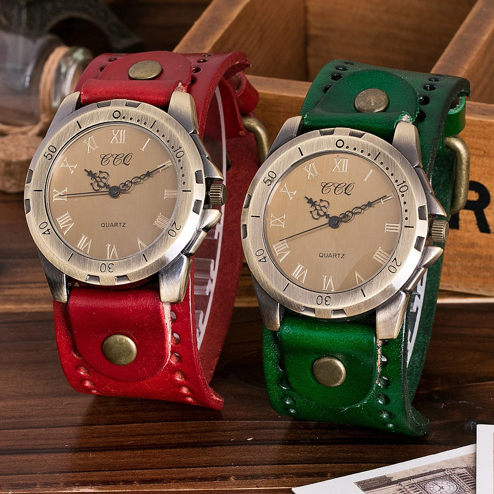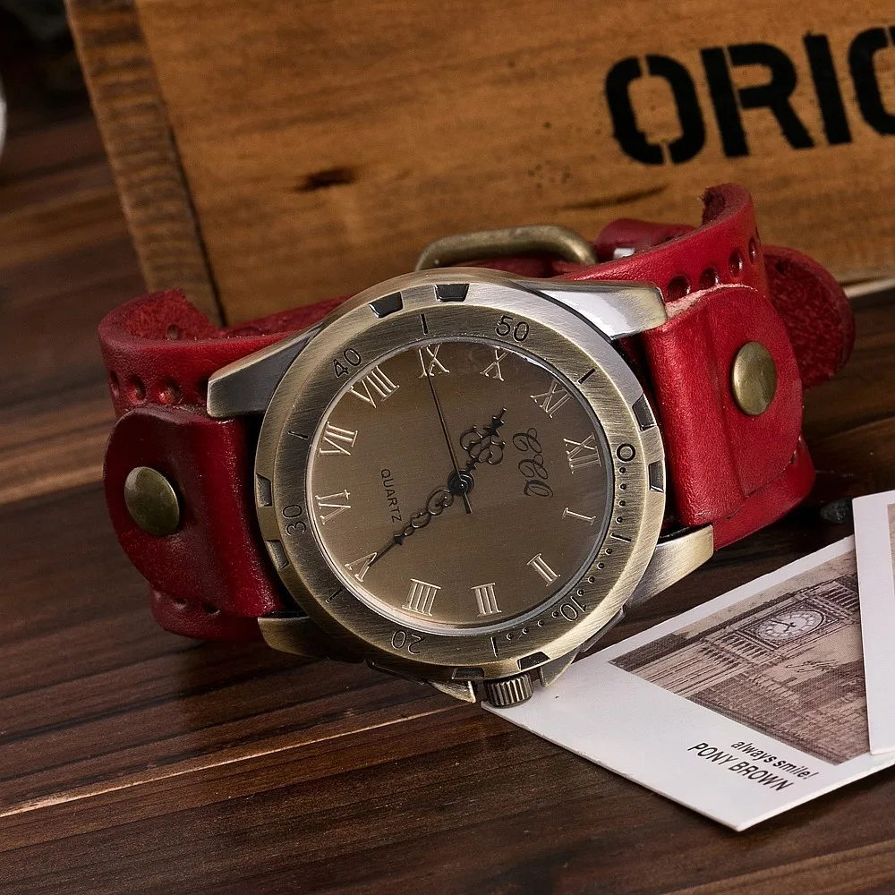 Часы CCQ мужские, винтажные, из коровьей кожи