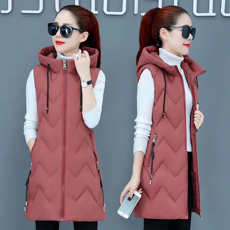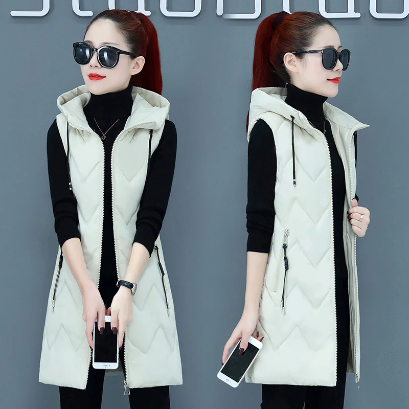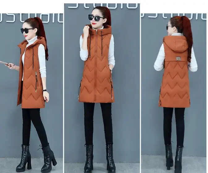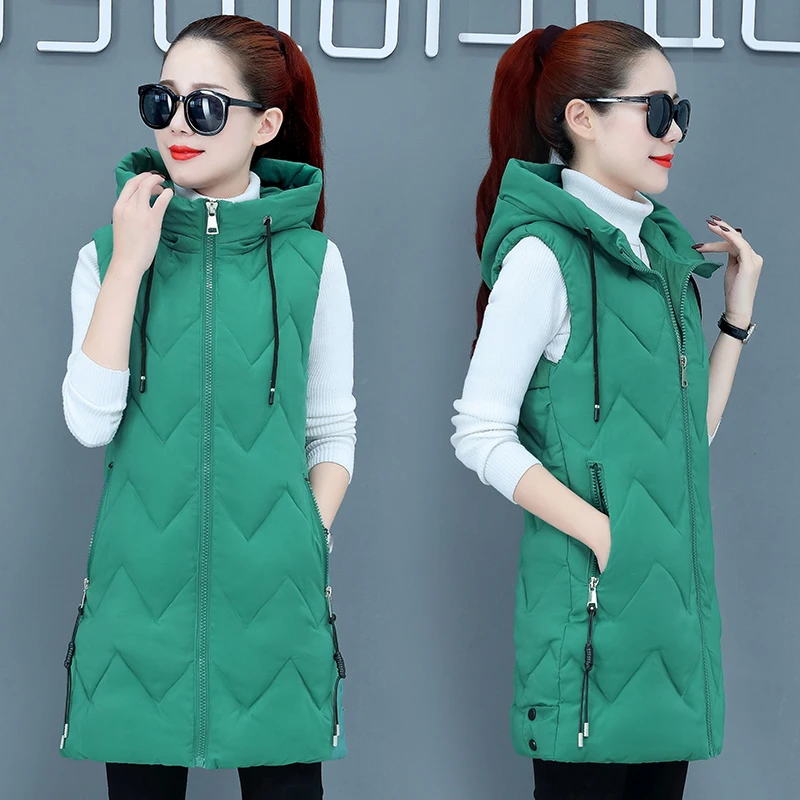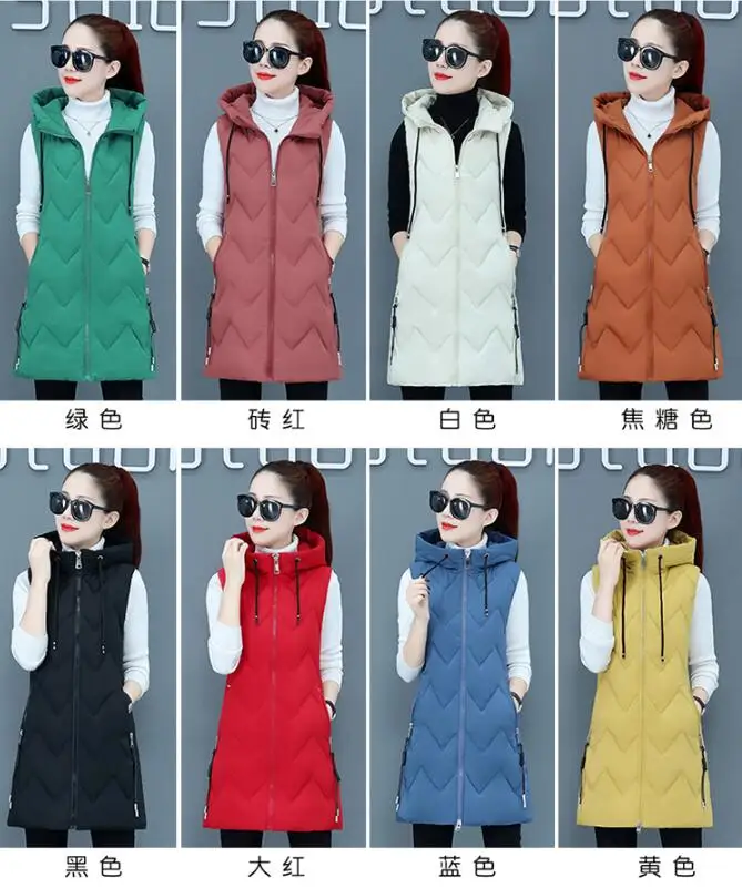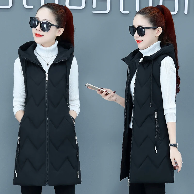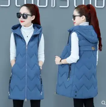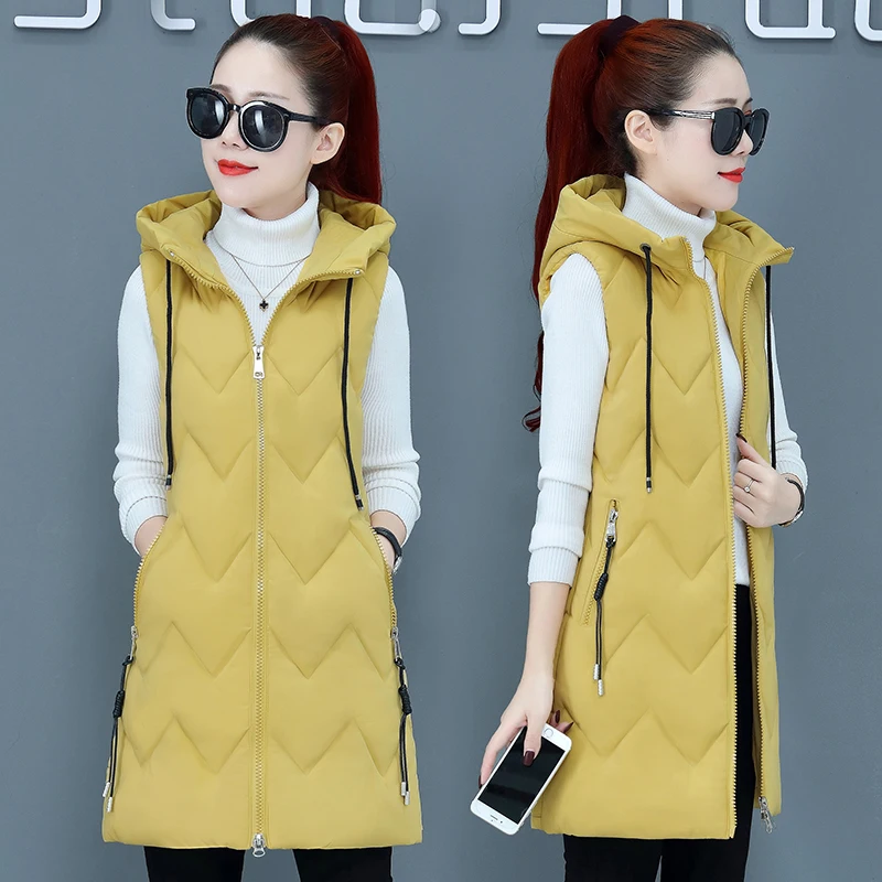 Женский Длинный жилет с воротником-стойкой, Приталенный жилет без рукавов с хлопковой подкладкой, корейский модный жилет на молнии для зимы