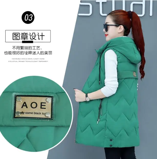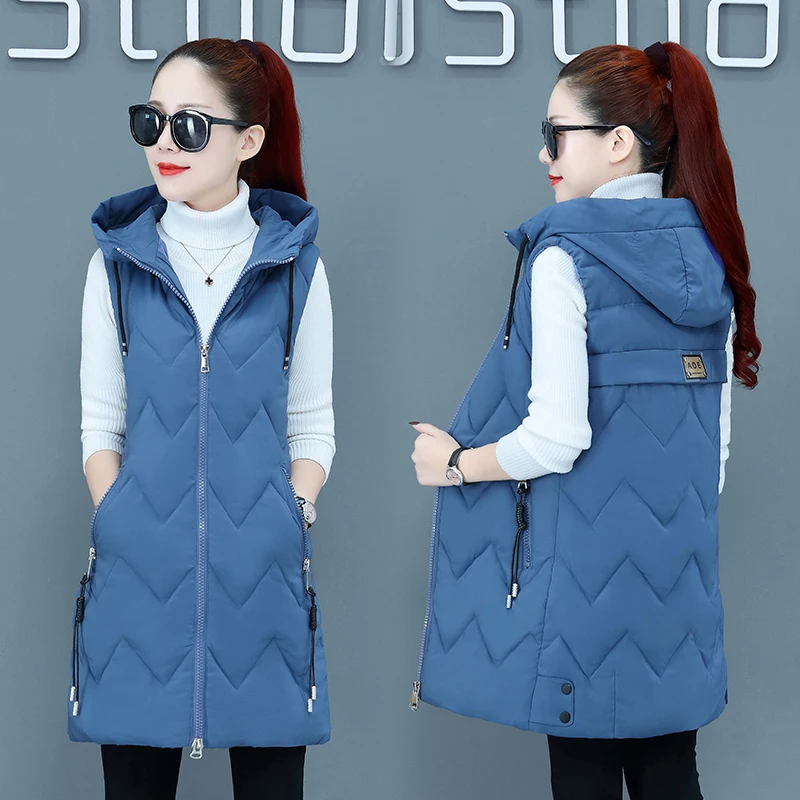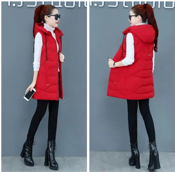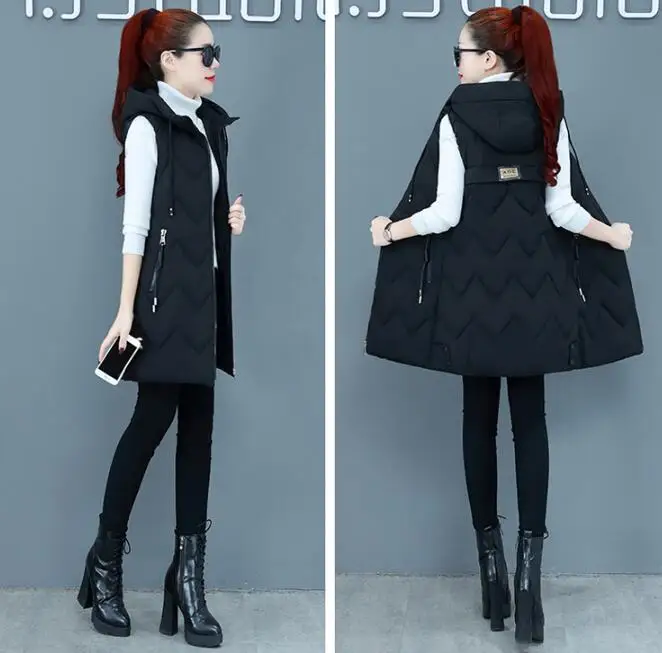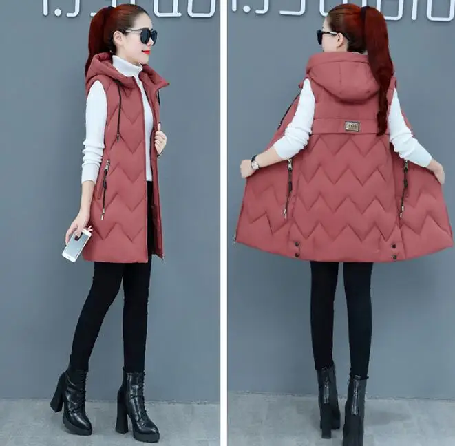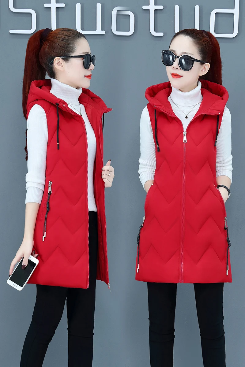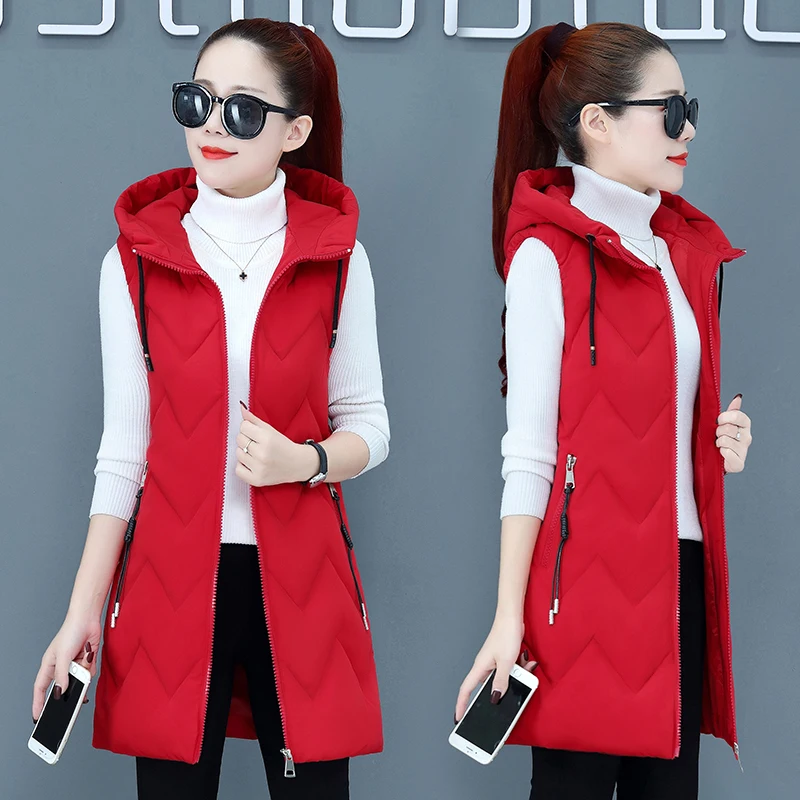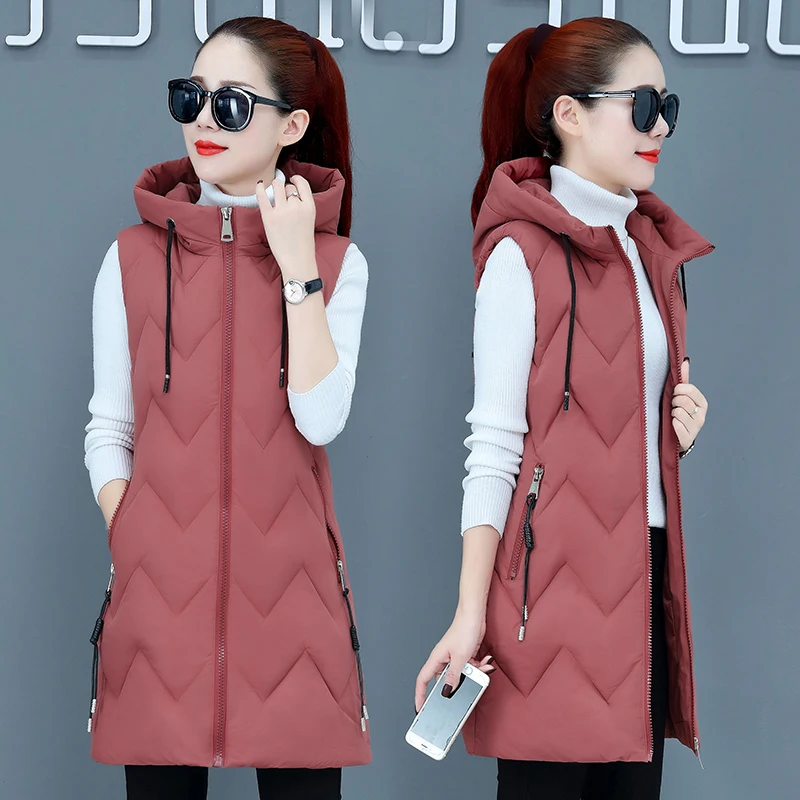 Женский Длинный жилет с воротником-стойкой, Приталенный жилет без рукавов с хлопковой подкладкой, корейский модный жилет на молнии для зимы