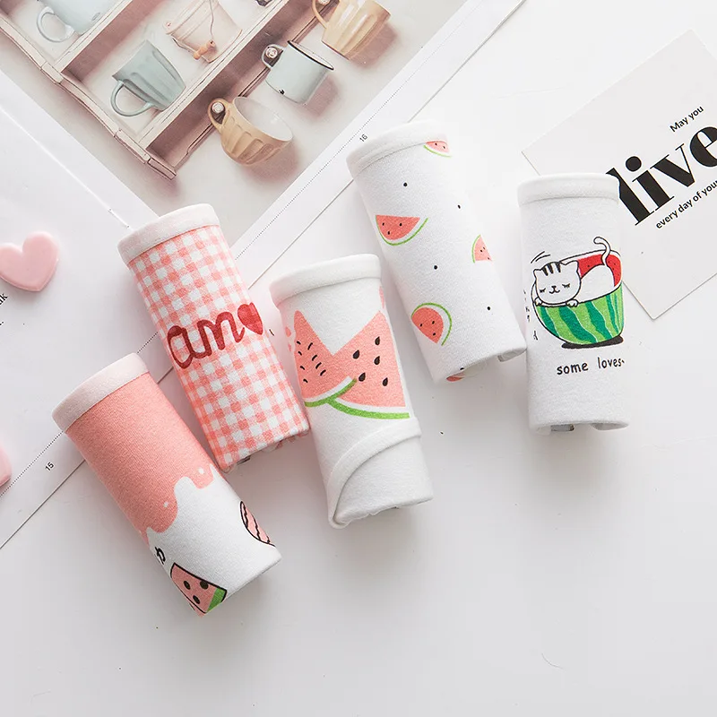 5 шт.комплект, женские хлопковые трусы с принтом фруктов и арбуза