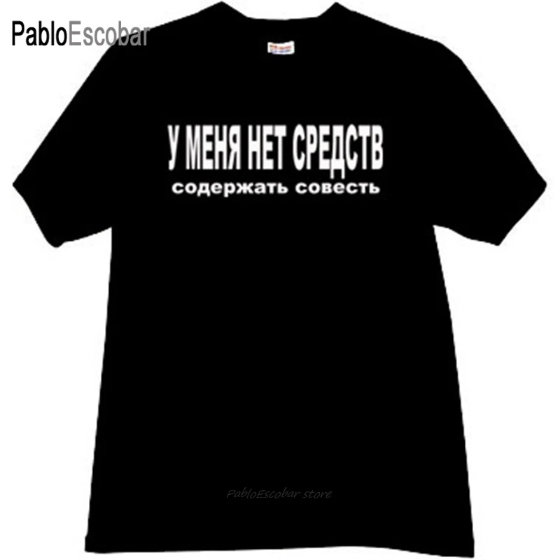 Хлопковая мужская футболка, модный топ, у меня нет денег, чтобы иметь совесть, смешная русская футболка, мужская летняя брендовая футболка
