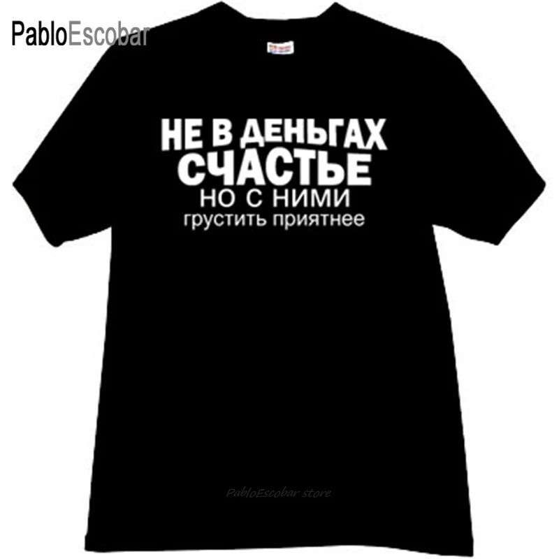 Хлопковая мужская футболка, модный топ, футболка черного цвета с надписью счастье не в деньгах, забавная мужская летняя брендовая футболка