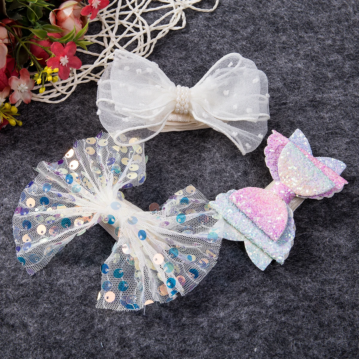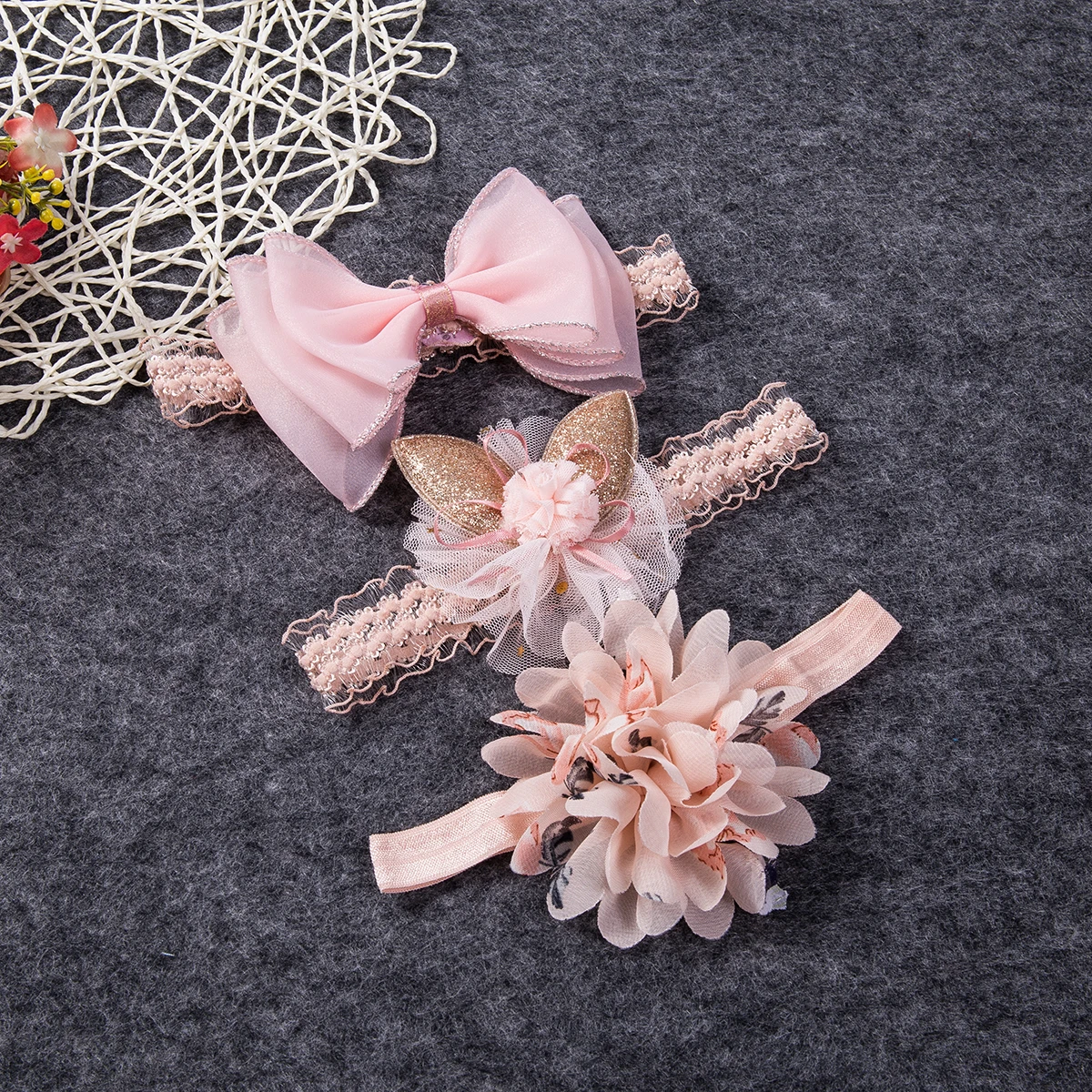 3 шт.компл., аксессуары для малышей, повязка на голову с кружевными цветами для девочек, эластичная лента для волос, повязка для волос для новорожденных, бант для маленьких девочек 0-3 лет