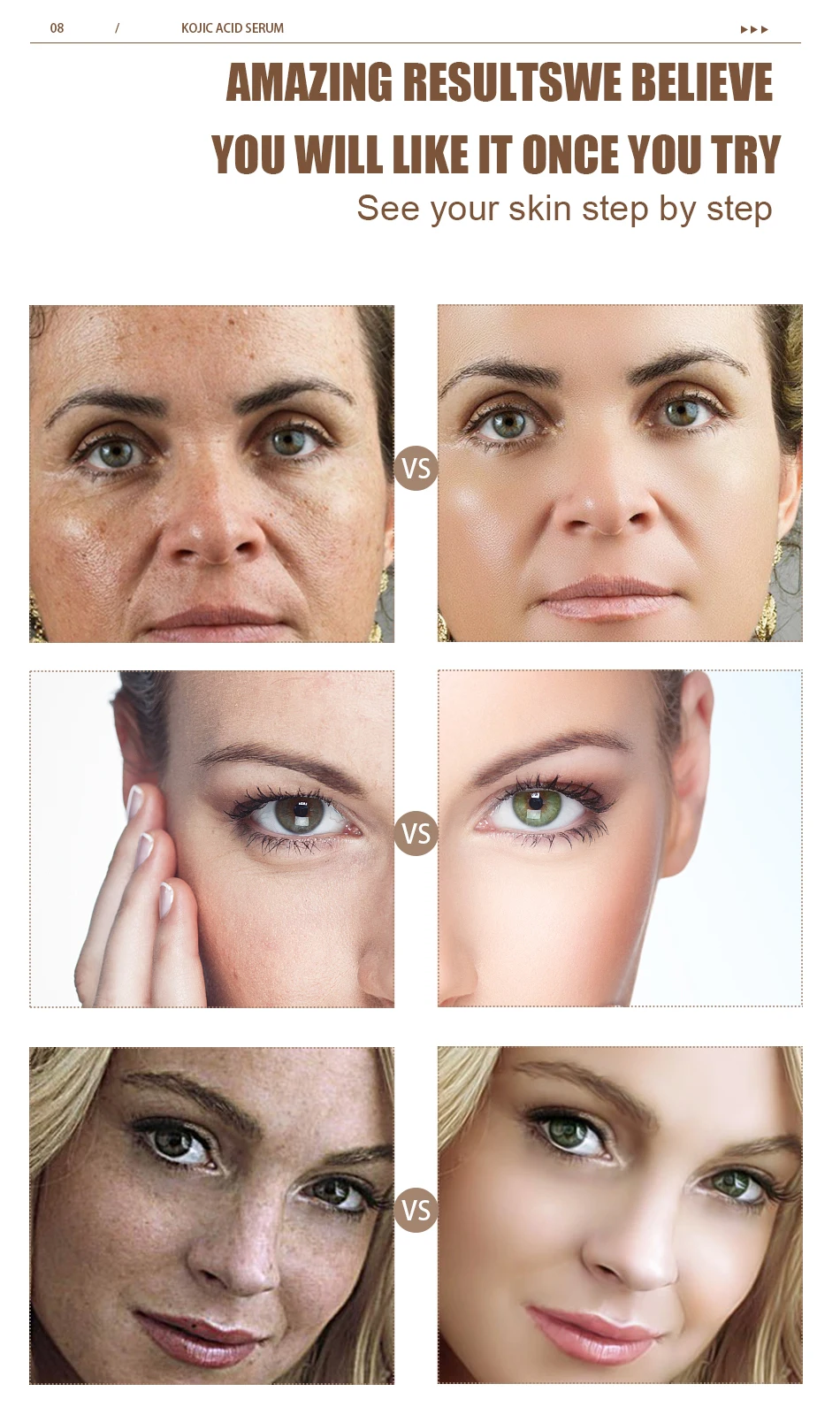 3. Сильно подавляет меланин кожи, эффективно удаляет веснушки, пятна от солнца, возрастные пятна, возрастные пятна, меласму, коричневые пятна, пигментацию, шрамы от акне