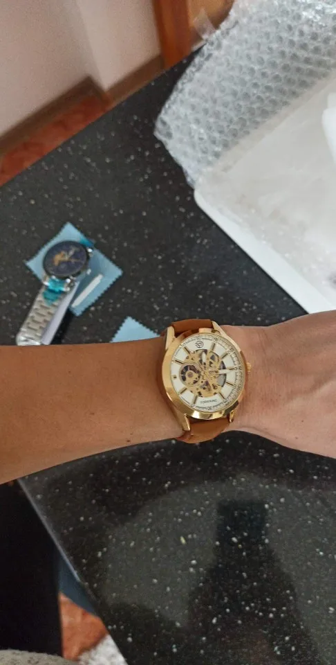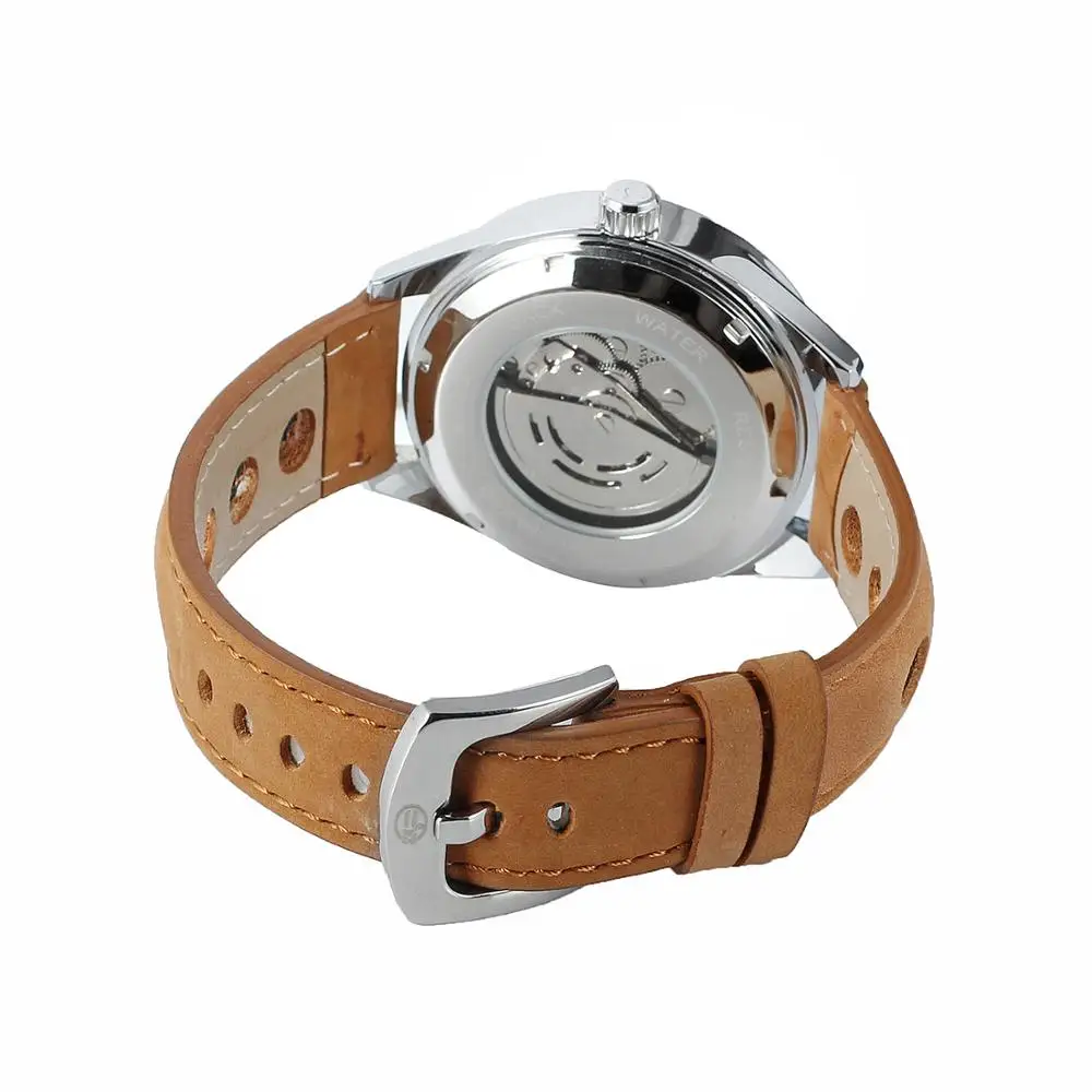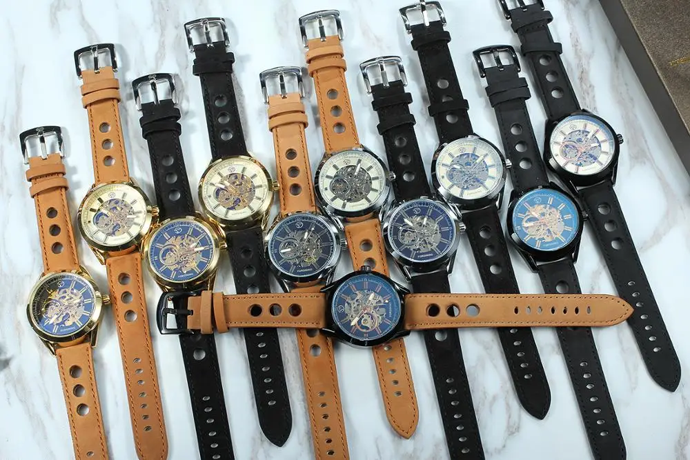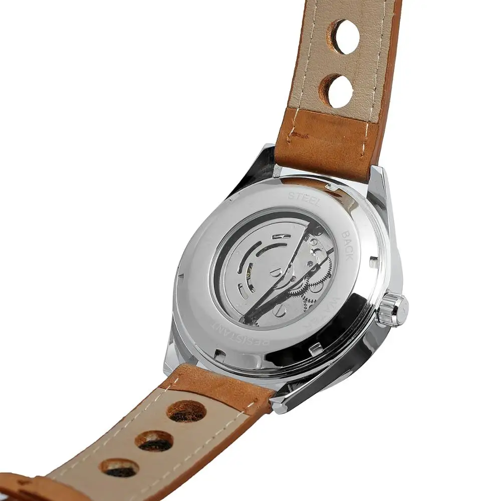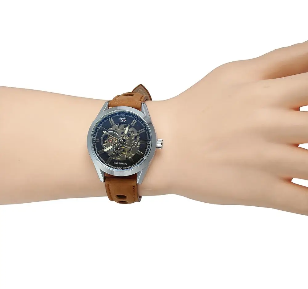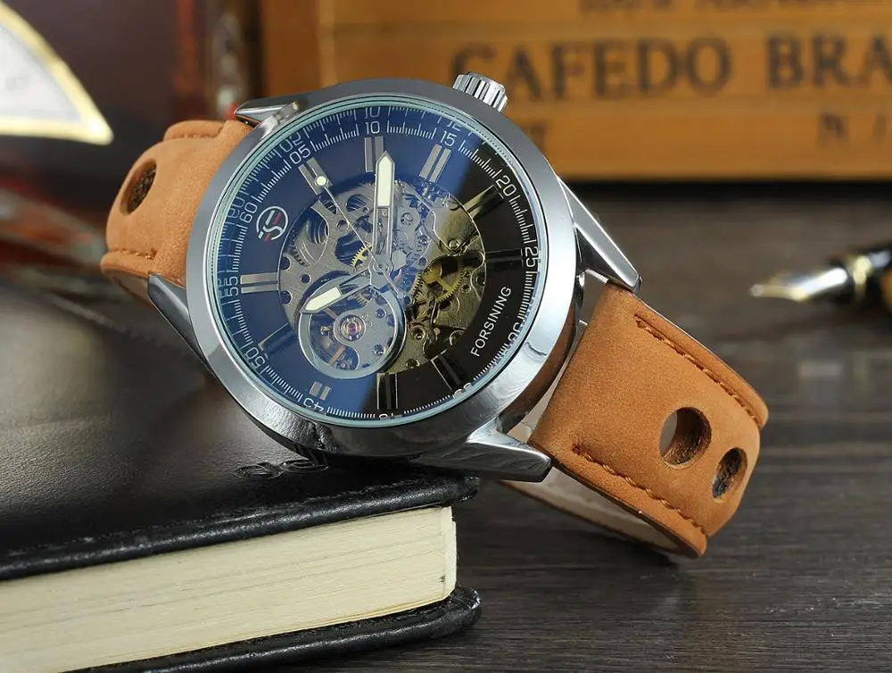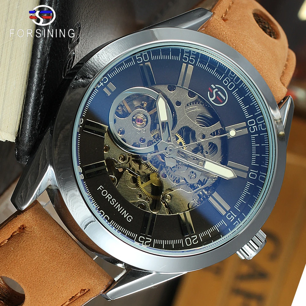 Часы наручные Forsining Мужские механические Автоматические, брендовые Роскошные прозрачные, из натуральной кожи, со стеклом Hardlex, синие, коричневые