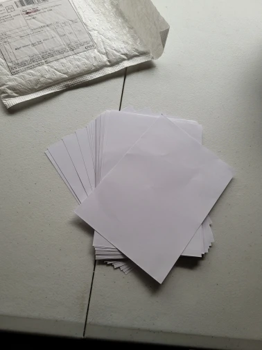 Бумаги получены в порядке. Они не были упакованы ни в чем, прежде чем упаковать в почтовый пакет. Из-за этого было сложнее получить их, так как они в основном выпадали по всему месту, и две внешние части были сложены, когда они кладут листы в почтовый пакет.