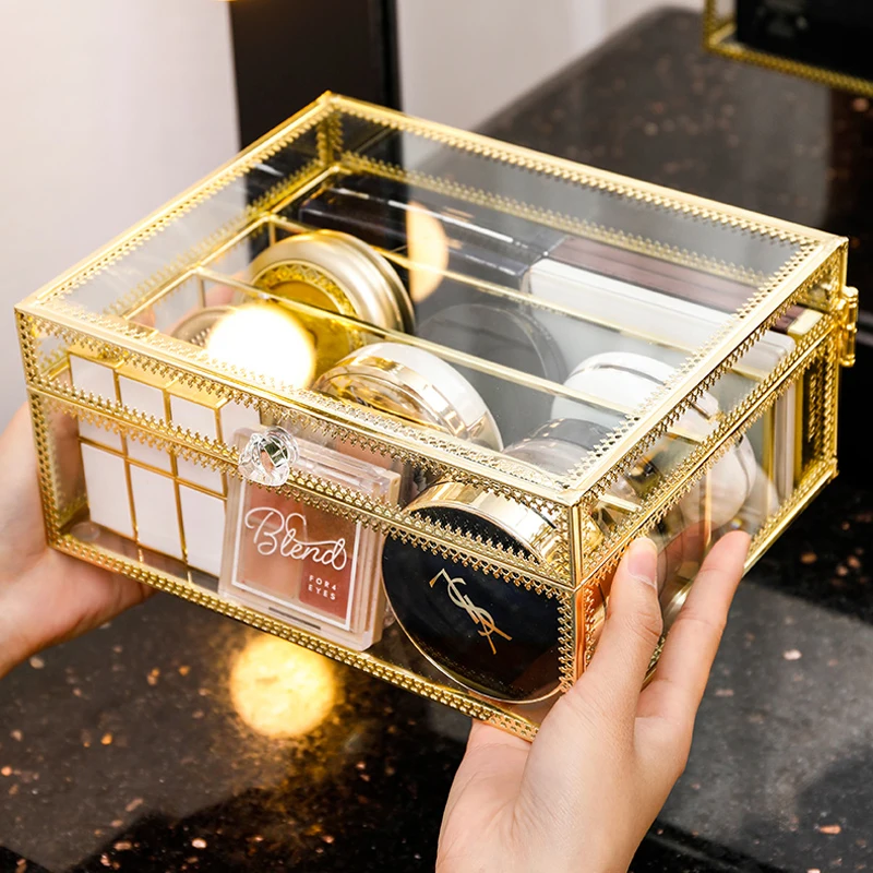 Пылезащитный органайзер для макияжа, стеклянный ящик для хранения теней для век, комод, держатель для губной помады, подставка для косметики, органайзер для макияжа