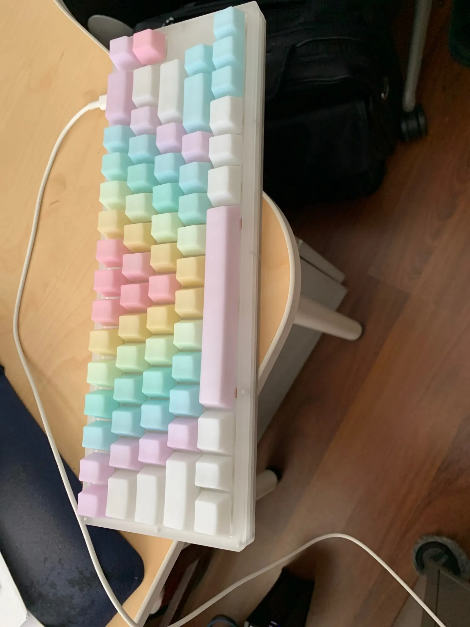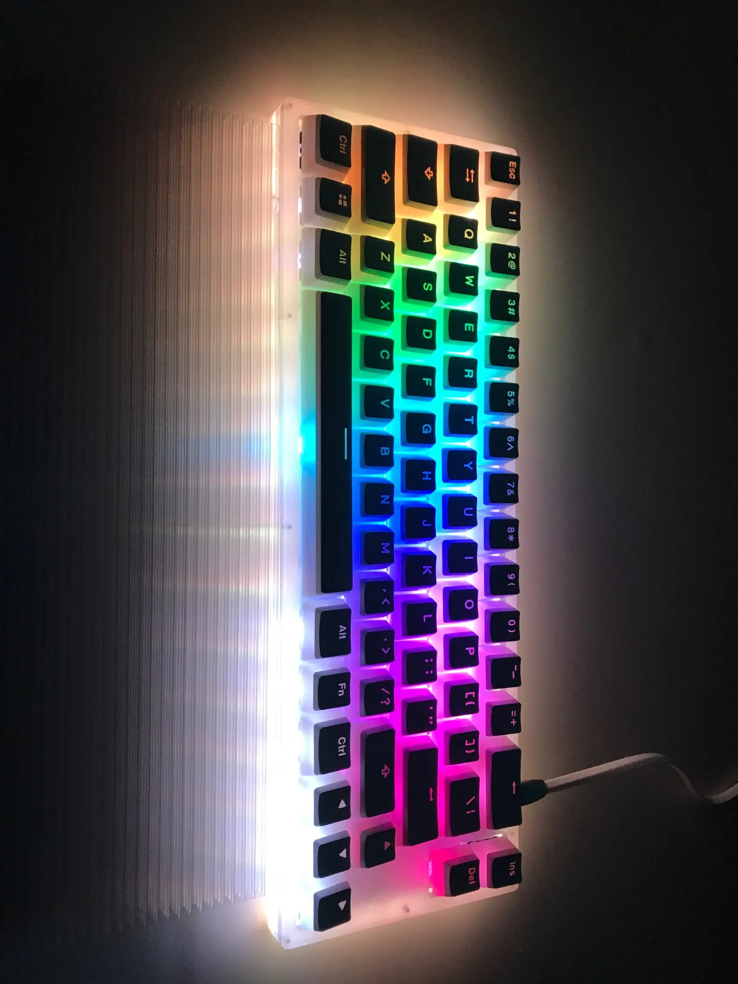 Клавиатура соответствует ожиданиям во всем, кроме корпуса - хлипковат, тонковат (4 слоя акриловых пластин), потрескивал при изгибе и болталась немного сама плата пока не вставил свичи. В остальном норм. самый бюджетный вариант в данной раскладке с хотсвапом и подстведкой по кругу