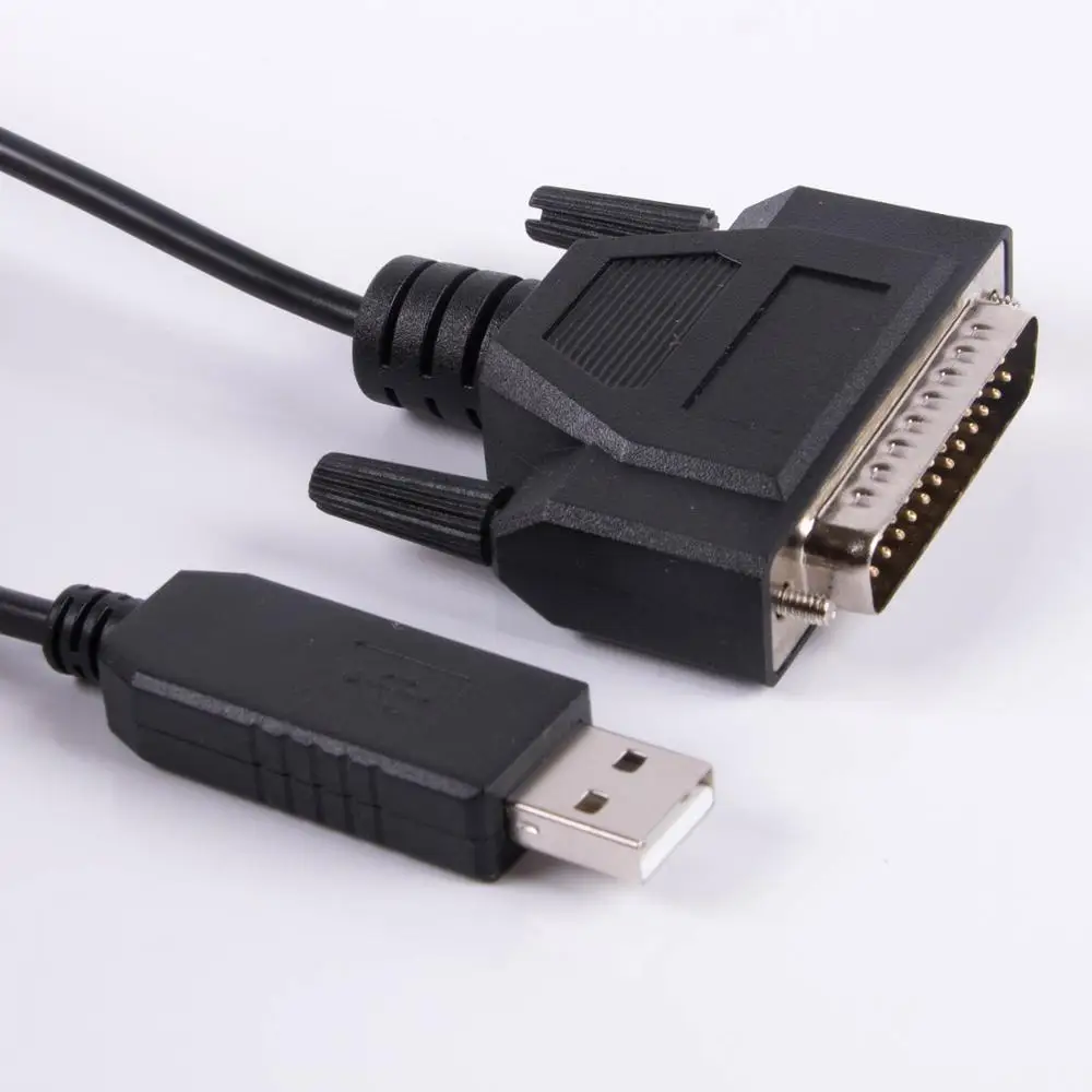 Сверхмощный металлический соединитель DB25 с запорными винтами на одном конце, пластиковый корпус USB на другом конце кабеля с потоком данных