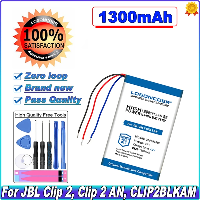 LOSONCOER GSP383555 1300mAh батарея для JBL Clip 2, Clip 2 AN, CLIP2BLKAM CS056US P04405201 P044052 Бесплатные инструменты