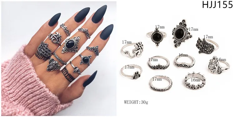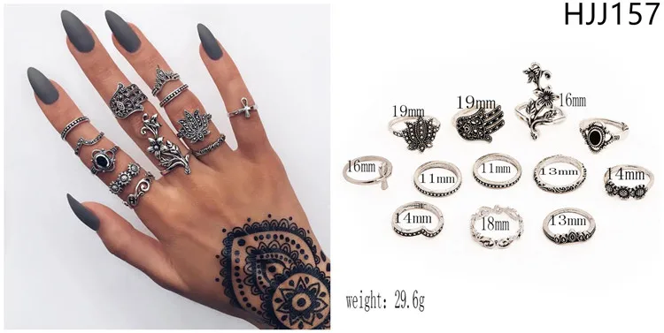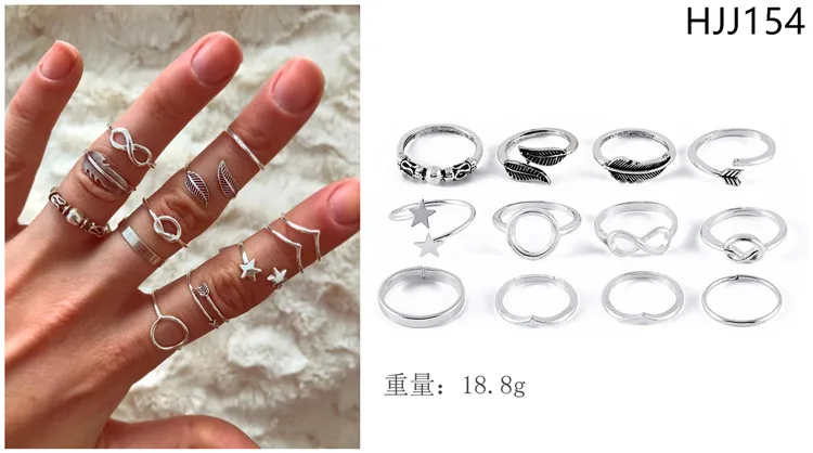 Набор колец в традиционном винтажном стиле, Изящные Ювелирные Украшения для вечеринки, Декор цветы, перья, бесконечность, стрела, Фатима, пальма, звезда, кристалл, перстень