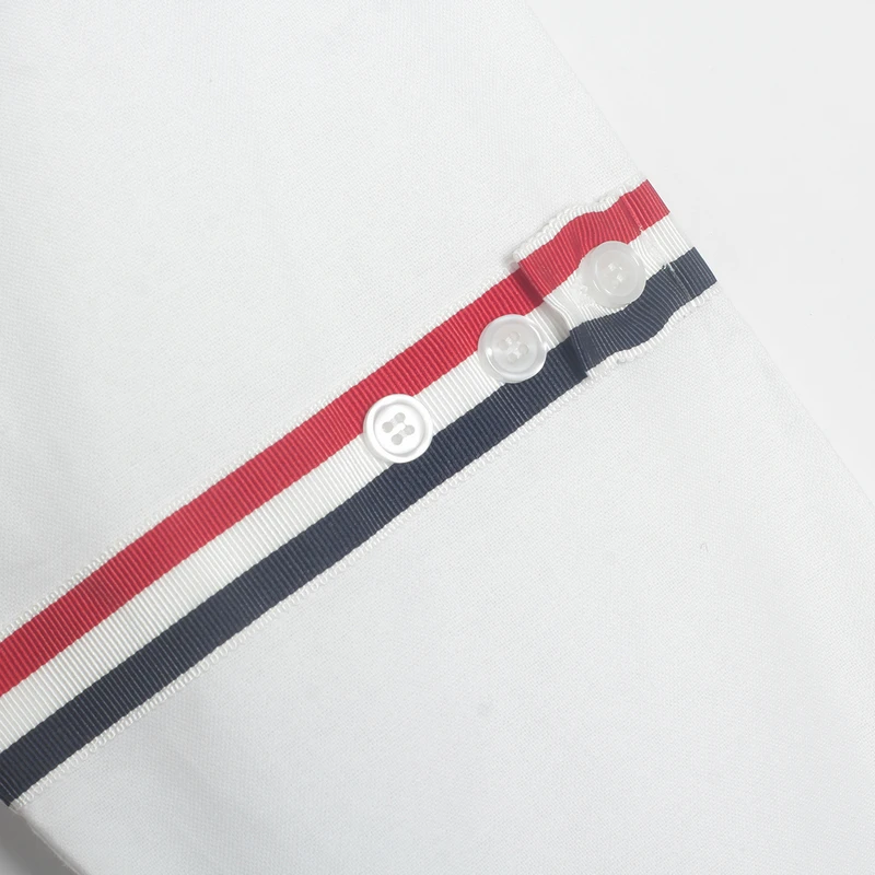 Рубашка из очень плотного хлопка, не тянется. Внимательно консультировалась с продавцом по размерной таблице, на 48 размер везде узковата, но под жилетку мне нравится. После стирки серые полоски не изменились, качество ткани выдержало.