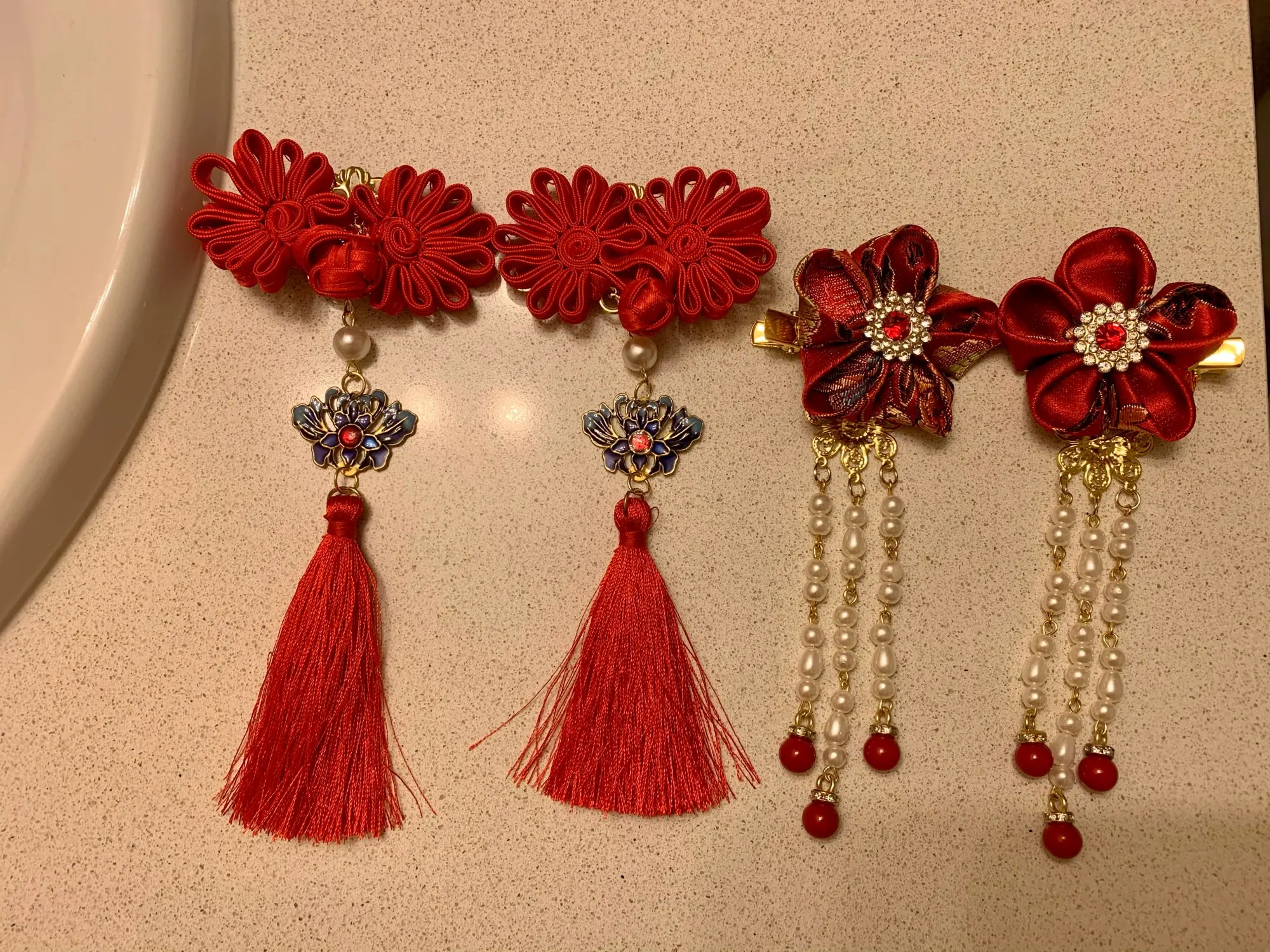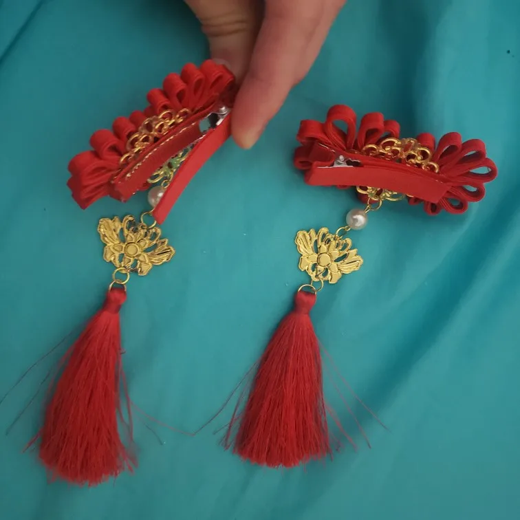 Действительно милые заколки для волос. Зажимы покрыты тканью, поэтому они не повредят волосы и не затянут их плотно. Зажимы идеально сидят на волосах. Пара симметрична вместе. Действительно хорошее качество и красивый дизайн. Идеальные заколки для волос в стиле qi lolita или hanfu.