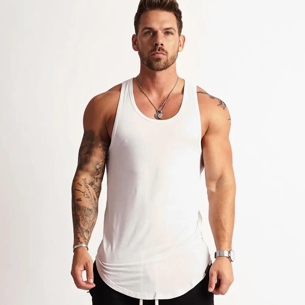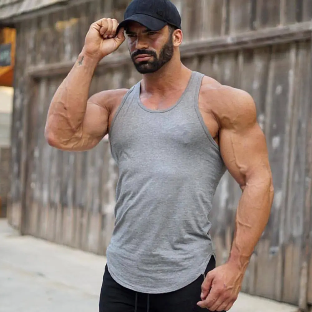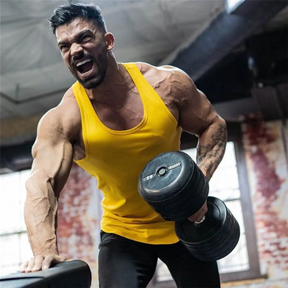 Мужская хлопковая майка без рукавов, однотонная, для занятий в спортзале, фитнесом