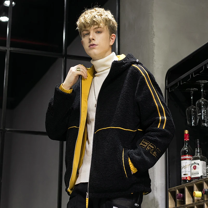 Горячее предложение, Брендовое качественное модное мужское осенне-зимнее пальто, новые трендовые куртки с капюшоном, мужское Двустороннее пальто из овечьей шерсти, мужская верхняя одежда