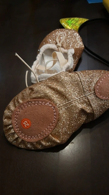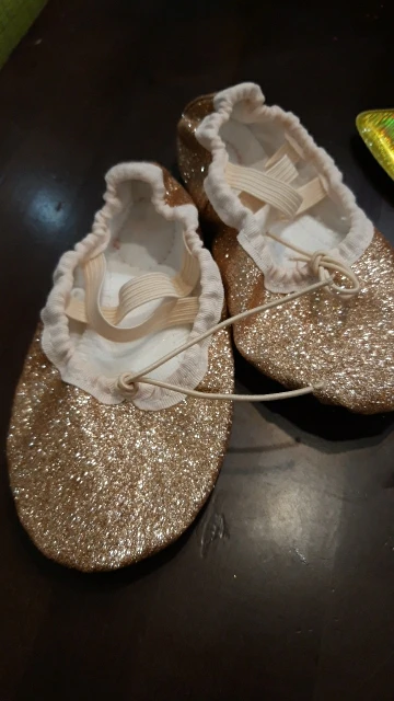 Дочке балетки очень понравились. Когда мы пришли на танцы все девочки из заметили. Спасибо. Блёстки осыпаются очень быстро. После трех раз одевания в нектторых местах стали белые пятна. Для выступления на пару-тройку раз хватит.