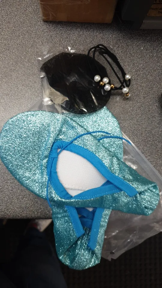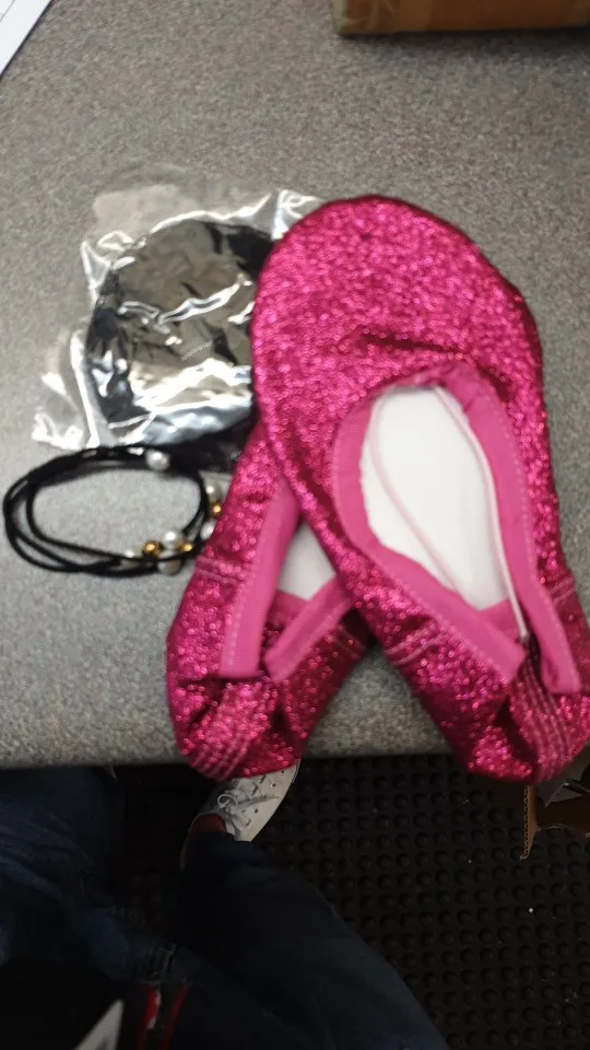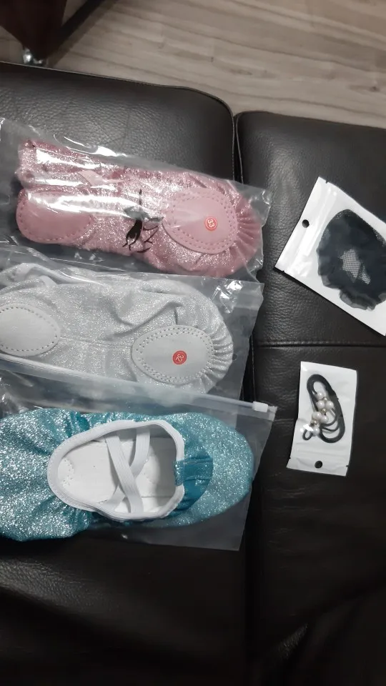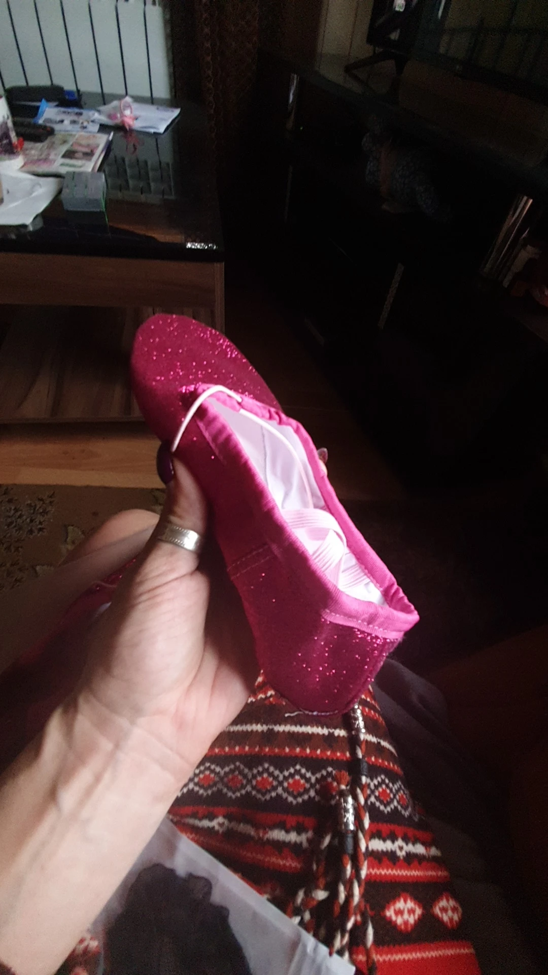 Продавец быстро отправил товар. Не плохие балетки, пришли достаточно быстро. Блёстки и вправду сыпятся. Размерной сетке соответствуют. И антискользящие подушечки высоковаты, дочка сказала, что не очень удобно. Но на занятиях ещё не тестили, поэтому посмотрим.