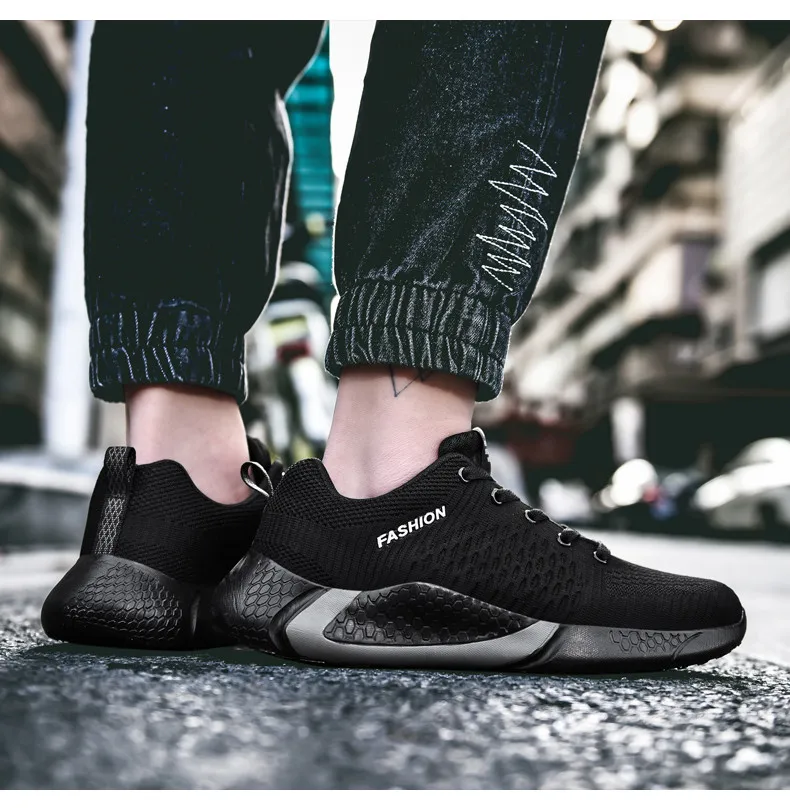 Мужские легкие кроссовки, удобная повседневная обувь, из дышащего материала, на шнуровке, плоская подошва, для ходьбы, черные, большие размеры