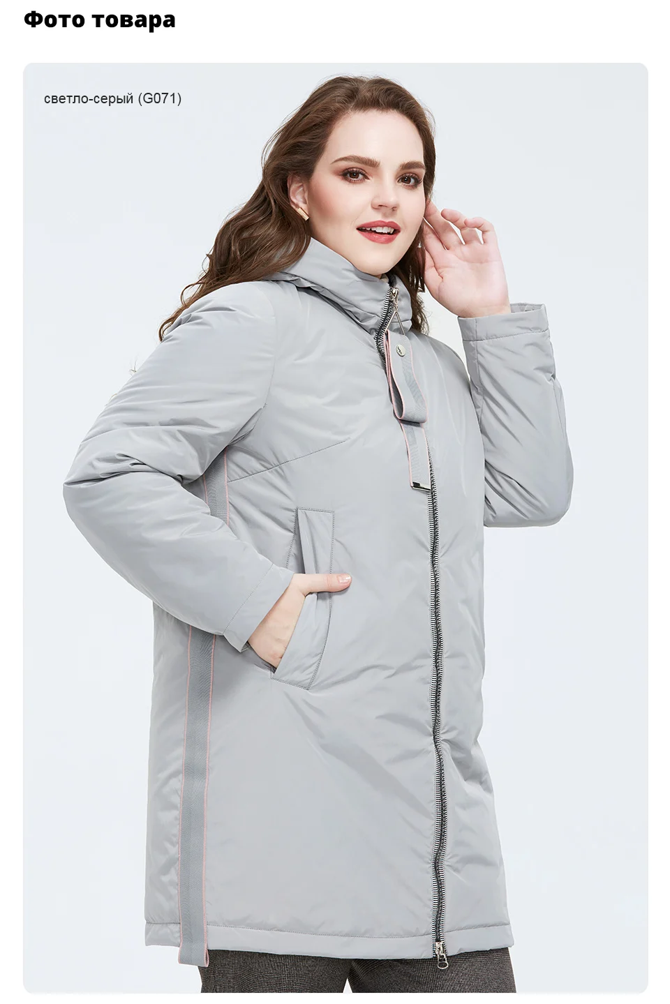 Курточка отличная! 2хл на размер 50-52 (ближе к 50) села свободно, как я и хотела. Цвет серый красивый, чуть с переливом. Очень лёгкая. Светоотражатели украшают дизайн. Подклад приятный к телу. На рост 160 на 10 см выше колена. Продавец общительный, даёт советы. Посылка пришла почтой России, в течении 3 недель. Вообще последнее время почта России стала работать слаженно.