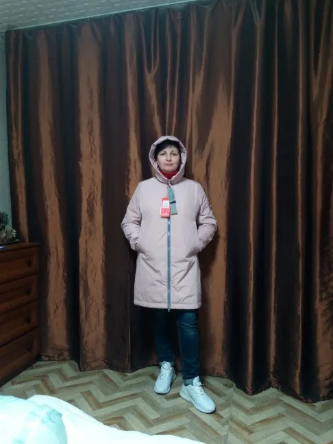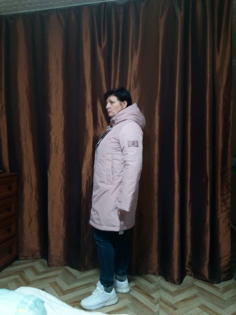 Куртка отличного качества. Цвет пудра красивый, на мой рост 162 длинна куртки по колено. Мои параметры 109-95-103, по совету продавца взяла xxl, в груди свободно можно одеть свиторок, т.к у меня не большие бедра, внизу широковато. Куртка понравилась. Продавец общительный.