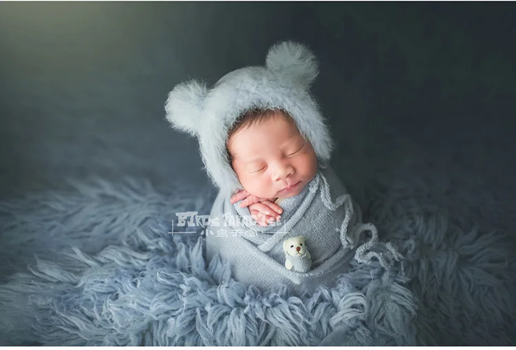 Реквизит для фотосъемки новорожденных, шапочка медвежонка, кукла, аксессуары для фотосъемки новорожденных (1 шт. шапочка и 1 шт. кукла медвежонка)