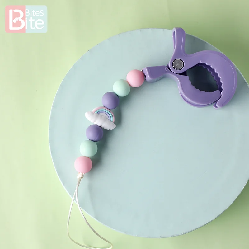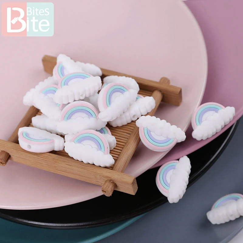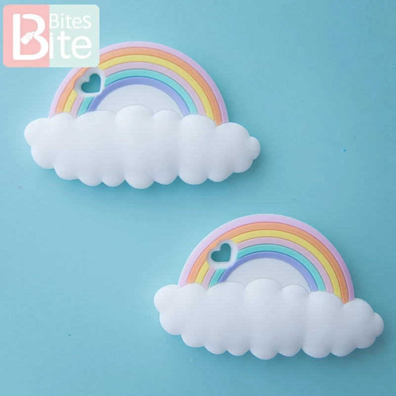Цепочка-прорезыватель для зубов детская, силиконовая, с радужным облаком