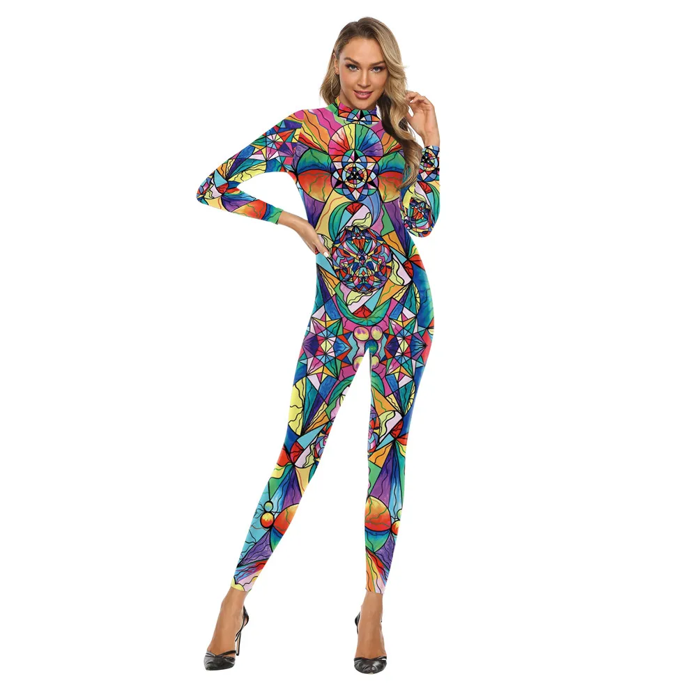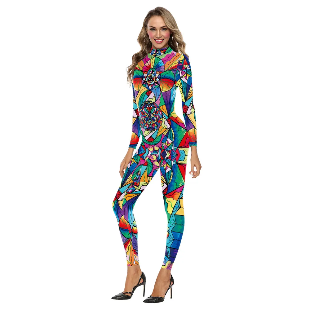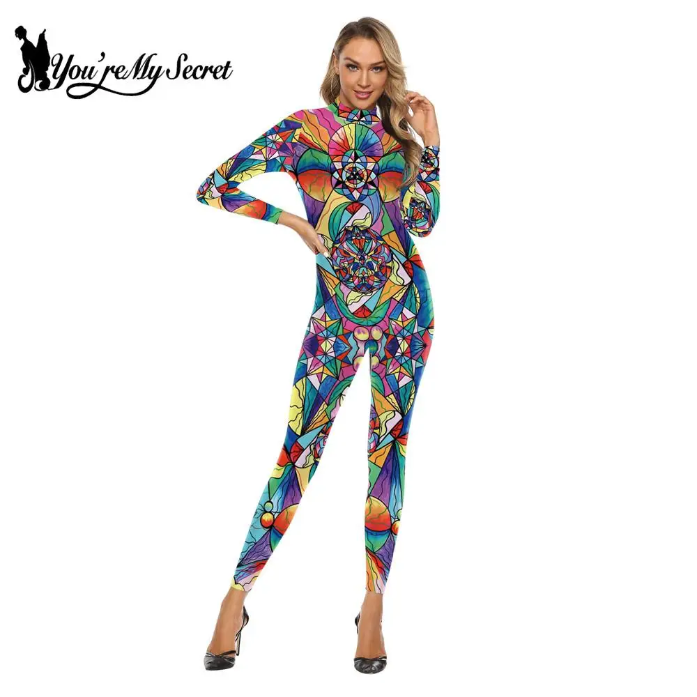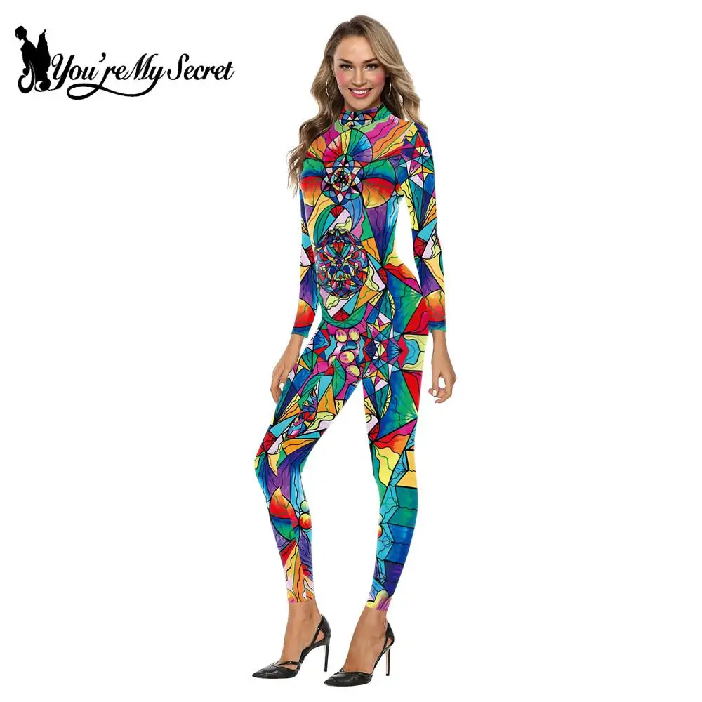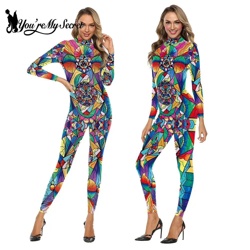 Женское боди с длинным рукавом You's My Secret, разноцветное богемное боди с принтом граффити, карнавальный костюм на Хэллоуин, костюмы для косплея