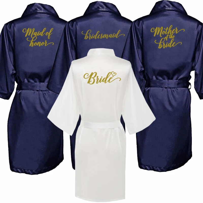 Темно-синий халат для невесты, Атласный халат, женская пижама для невесты, Свадебный халат для подружки невесты, подарок для матери, сестры невесты, халат для жениха