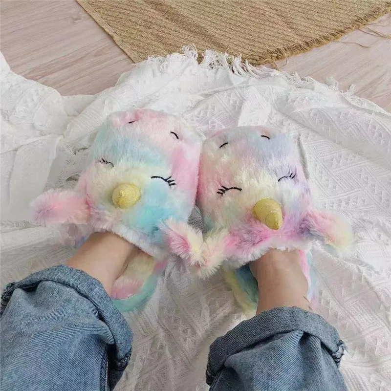 Плюшевые тапочки с мультяшным единорогом, женские зимние домашние т...