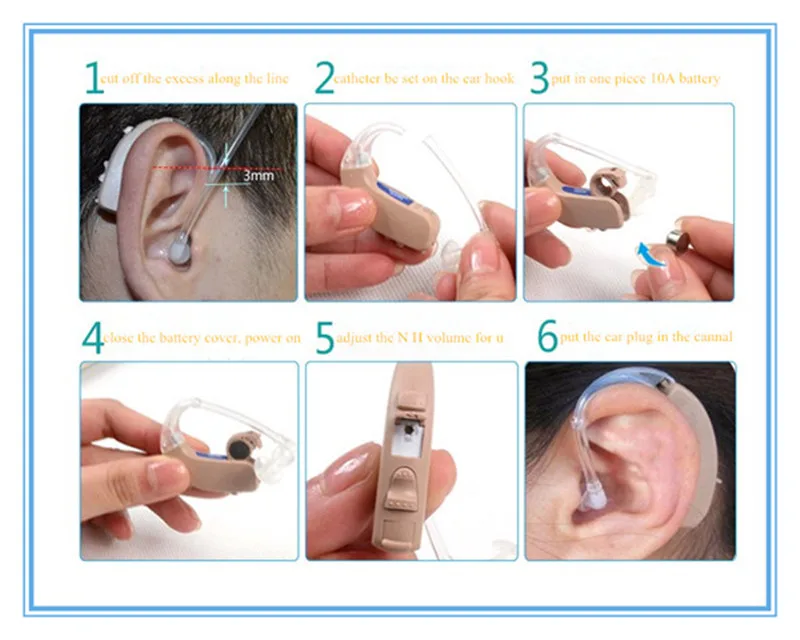2. Установка батареи: аккуратно откройте крышку отсека батареи, поместите батарею в отсек батареи в правильном направлении, затем закройте отсек батареи.3. Перед использованием этого элемента, вы должны включить-выключить переключатель, и повернуть громкость звука к минимуму4. Затем Положите этот товар на ухо, плотно Держите его5. Затем включите этот элемент, настройте громкость, пока не услышите чистый звук