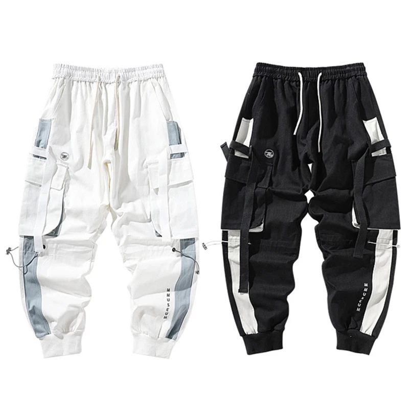 Мужские спортивные брюки-карго, белые тренировочные штаны в стиле пэчворк, с ленточным карманом, в стиле хип-хоп, HT136, 2020