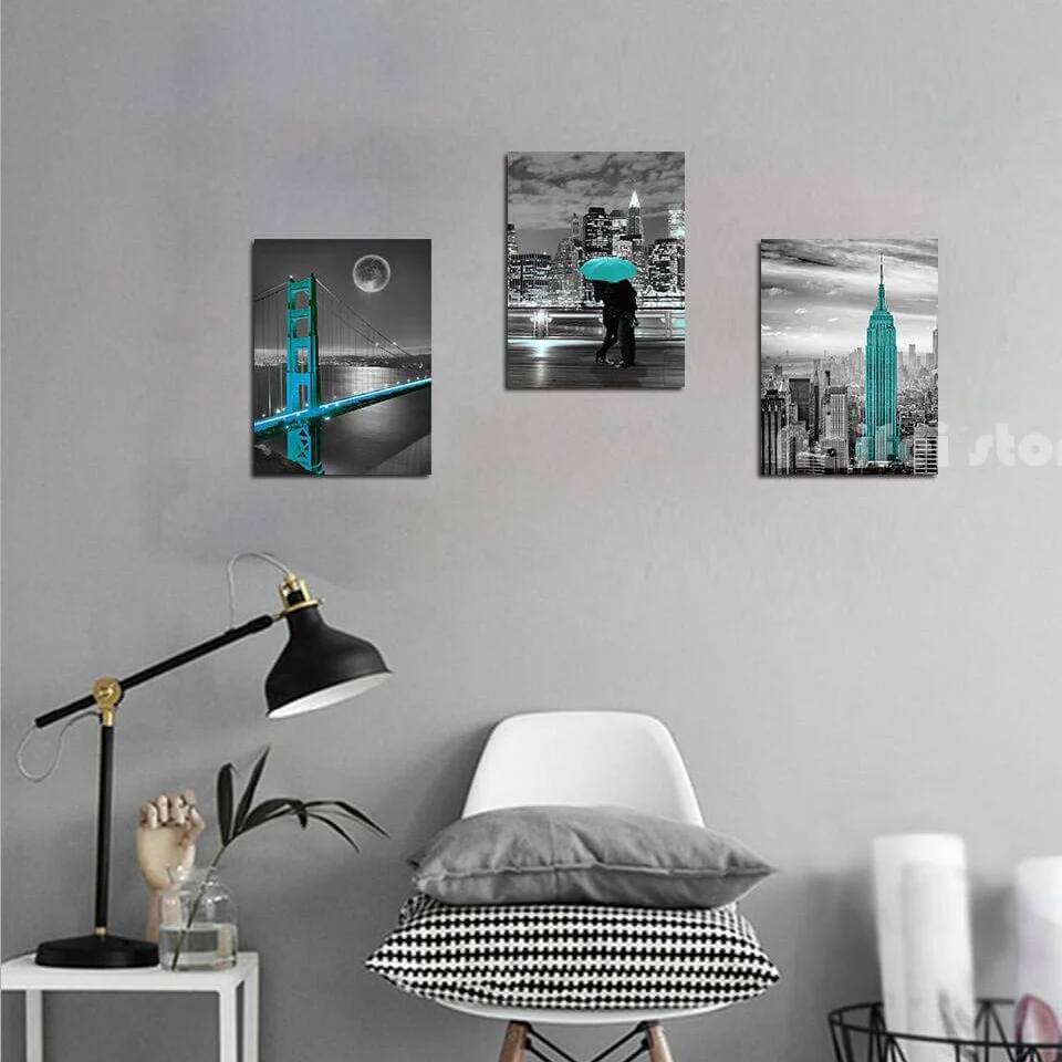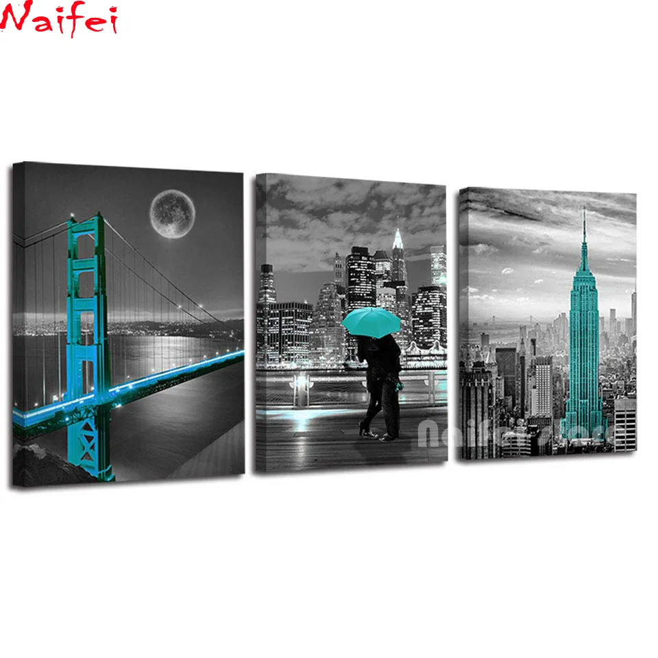 Романтическая картина 5D, алмазная живопись сделай сам, вышивка крестиком NYC, Настенная картина, алмазная вышивка, черный, белый, зеленый, городская ночь