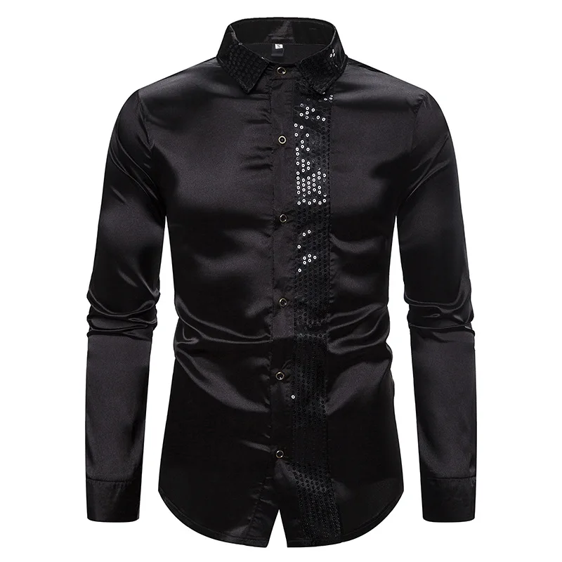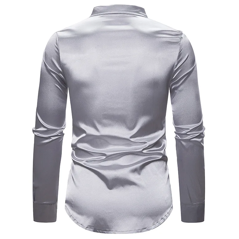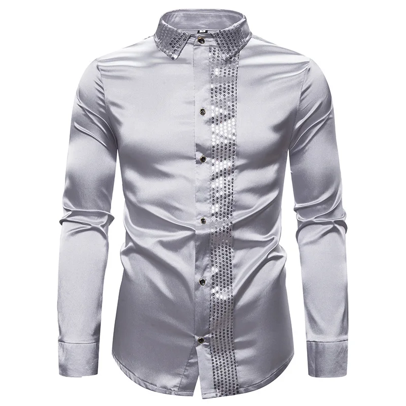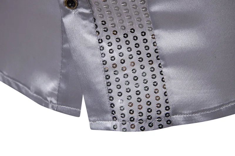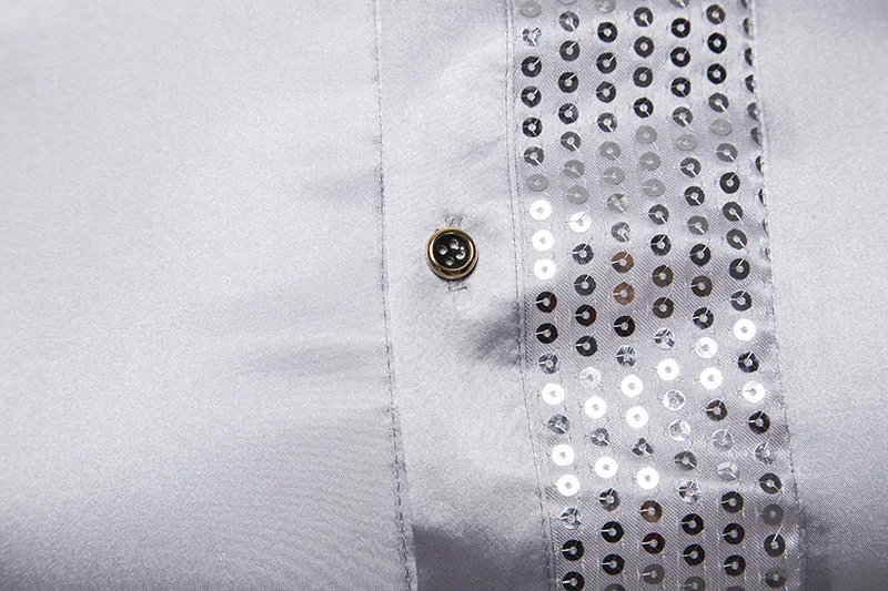 Мужская приталенная рубашка, сияющая Серебряная рубашка с блестками, украшенная блестками, новинка 2021, мужские классические рубашки, повседневная мужская рубашка для свадебной вечеринки XXL