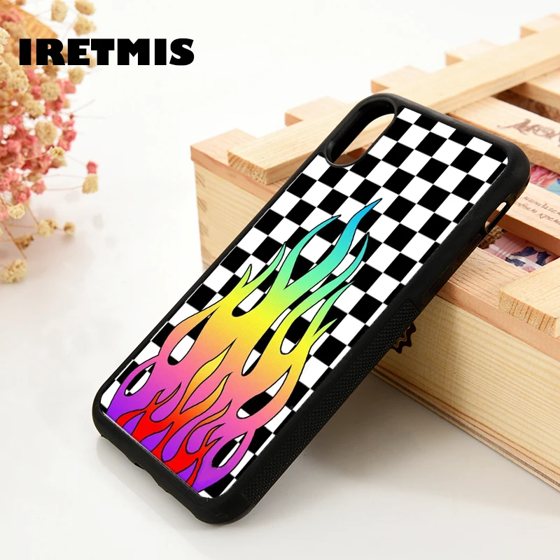 Iretmis 5 5S SE 6 6S Мягкий силиконовый чехол для телефона iPhone 7 8 plus X Xs 11 Pro Max XR черно-белые шашки радужные пламя
