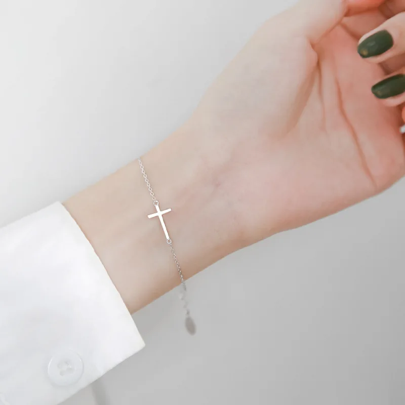 925 серебряный крест браслет для женщин, браслет с подвеской на зес...