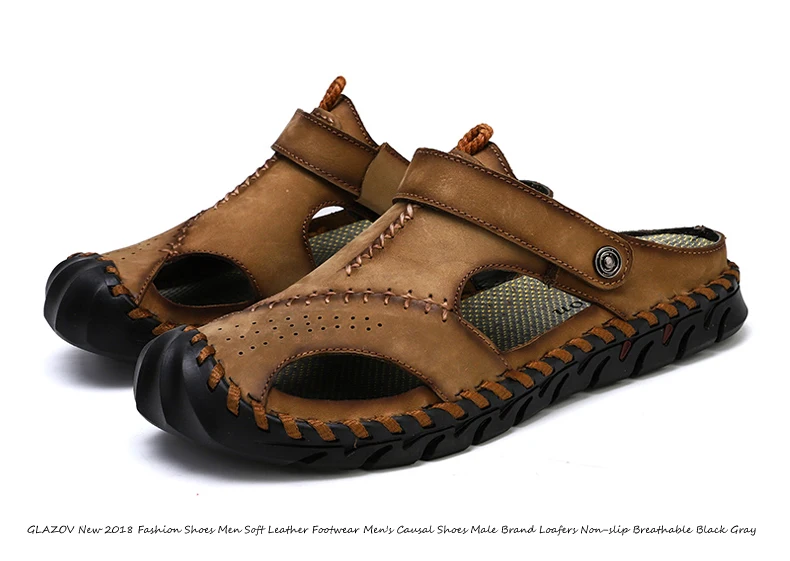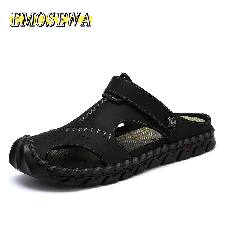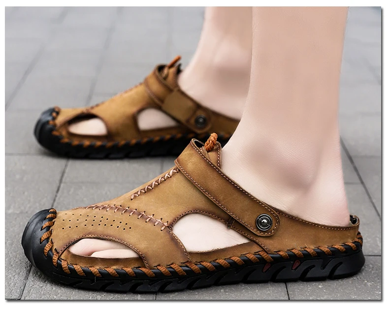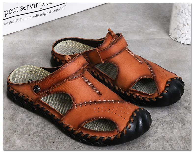 Мужские Пляжные Шлепанцы из натуральной кожи, без застежки, с пряжкой