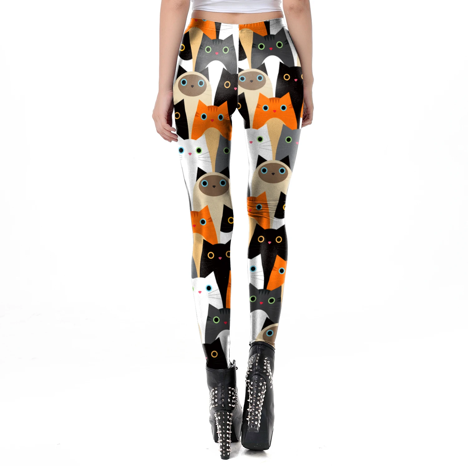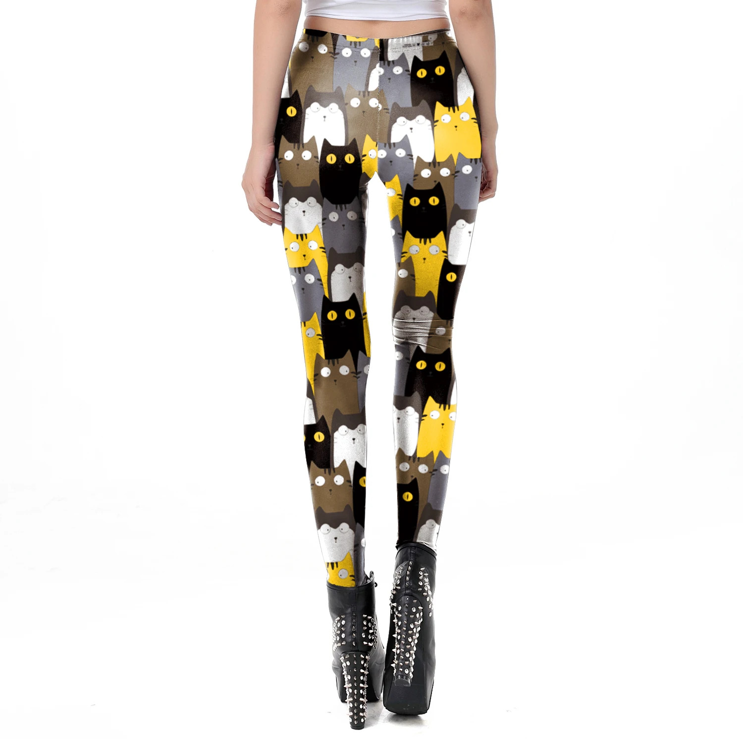 Женские эластичные леггинсы с рисунком кошки, из полиэстера
