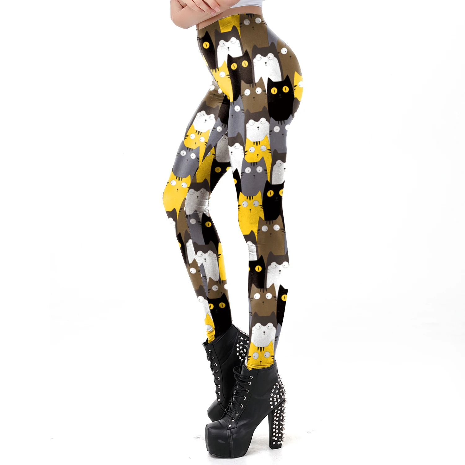 Женские эластичные леггинсы с рисунком кошки, из полиэстера