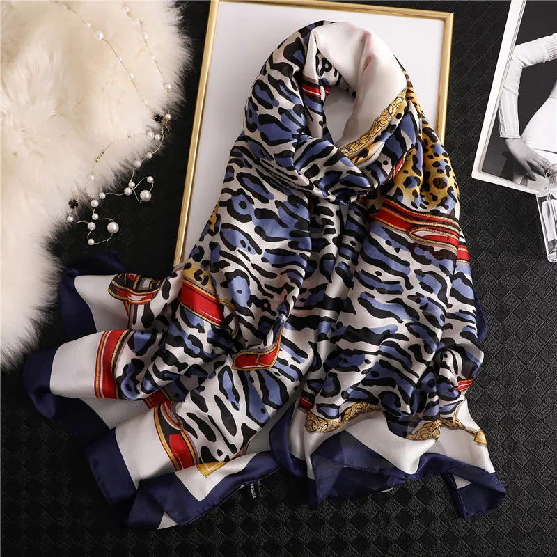 2022 Новый брендовый дизайнерский шелковый шарф с леопардовым принт...