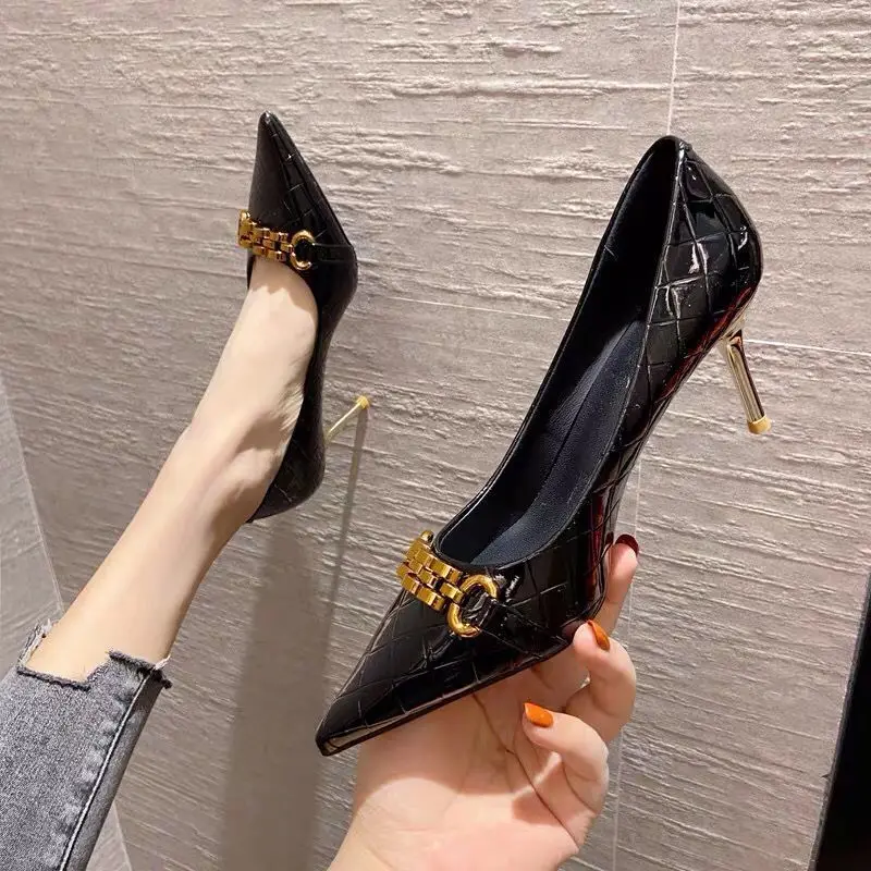 Женские модные коричневые весенние удобные слипоны на высоком каблуке-шпильке; Женские повседневные Черные Летние офисные туфли на высоком каблуке; E5561