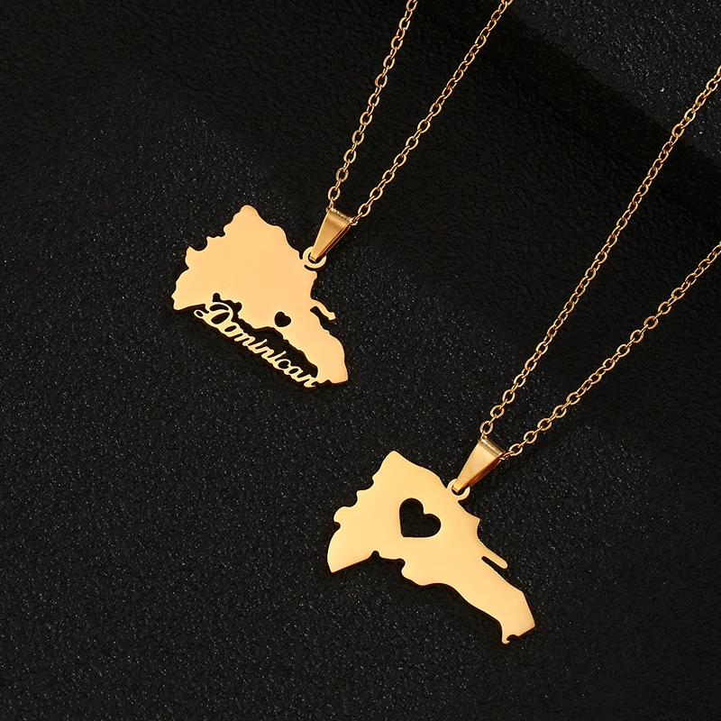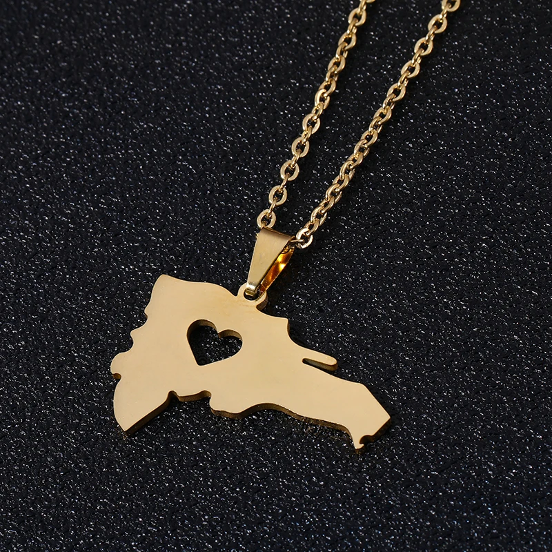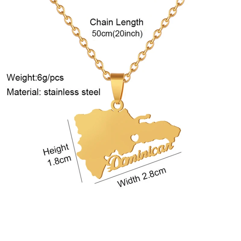 Ожерелье женское из нержавеющей стали, с картой Доминиканской Респу...