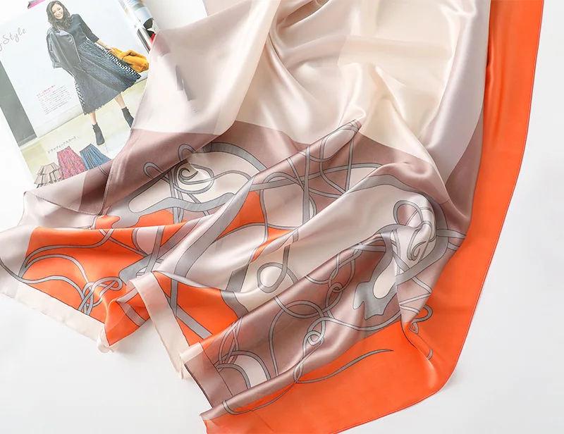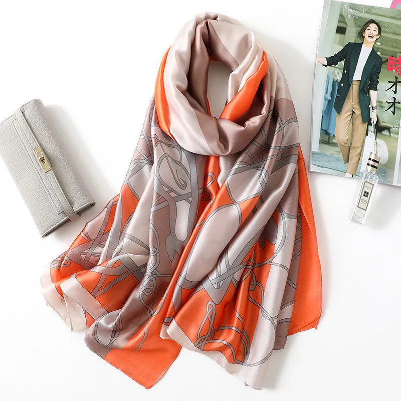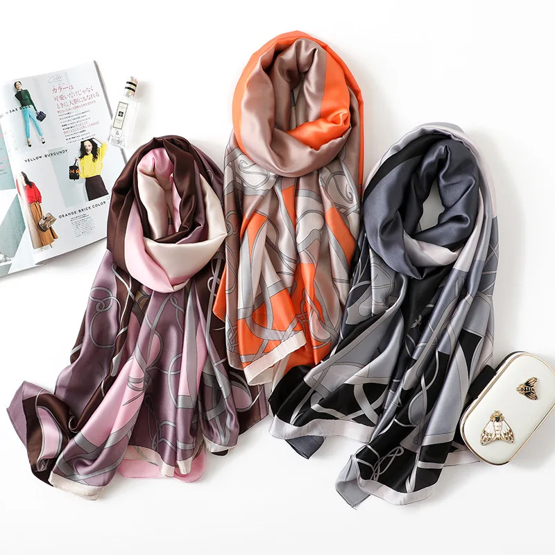 Шаль шелковая Женская, с принтом, на осень и зиму, 2019