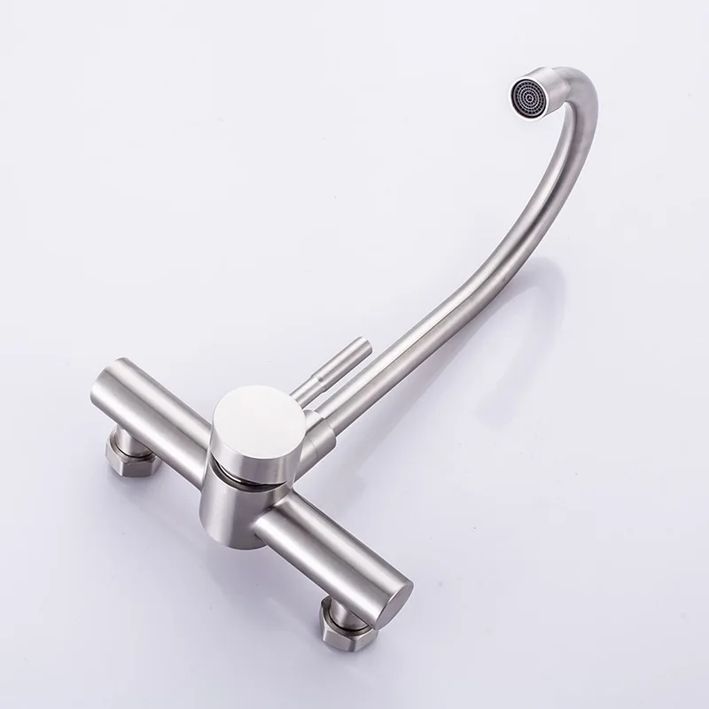Настенный смеситель из нержавеющей стали 304 для кухни, вращающийся кран с двойным отверстием для горячей и холодной воды