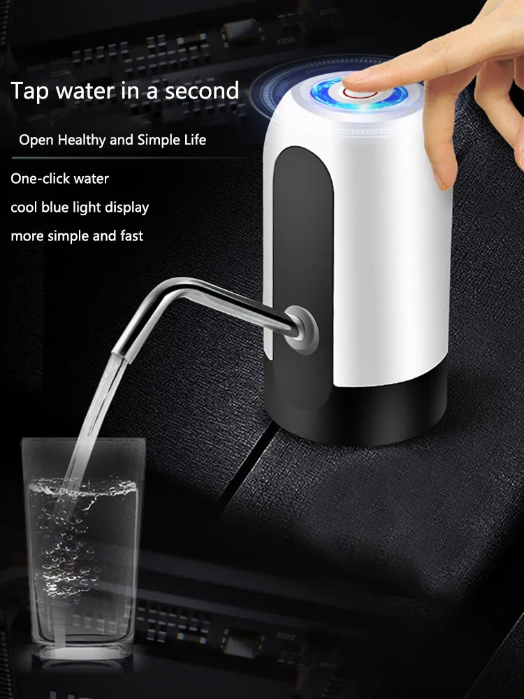 Особенности: Автоматическое электрическое всасывающее устройство очень удобно и полезно. Идеально подходит для офиса, дома, кухни, школы и так далее. Подходит для чистой питьевой воды в бутылках, совместима с большинством бутылок 4,5л, 5л, 7,5л, 10л, 11,3л, 15л и 18,9л. Зарядка через USB кабель. Для полной зарядки требуется всего 3-4 часа. Пищевая силиконовая трубка, без запаха, Нетоксичная, здоровая. Конструкция съемной трубки для легкой очистки. Аккуратно нажмите на переключатель, работающий сразу.