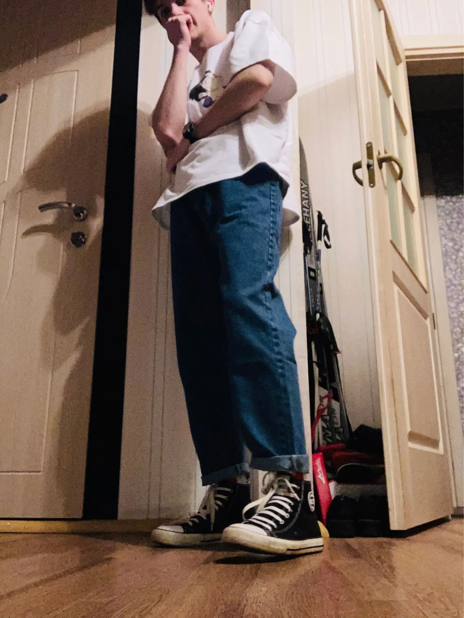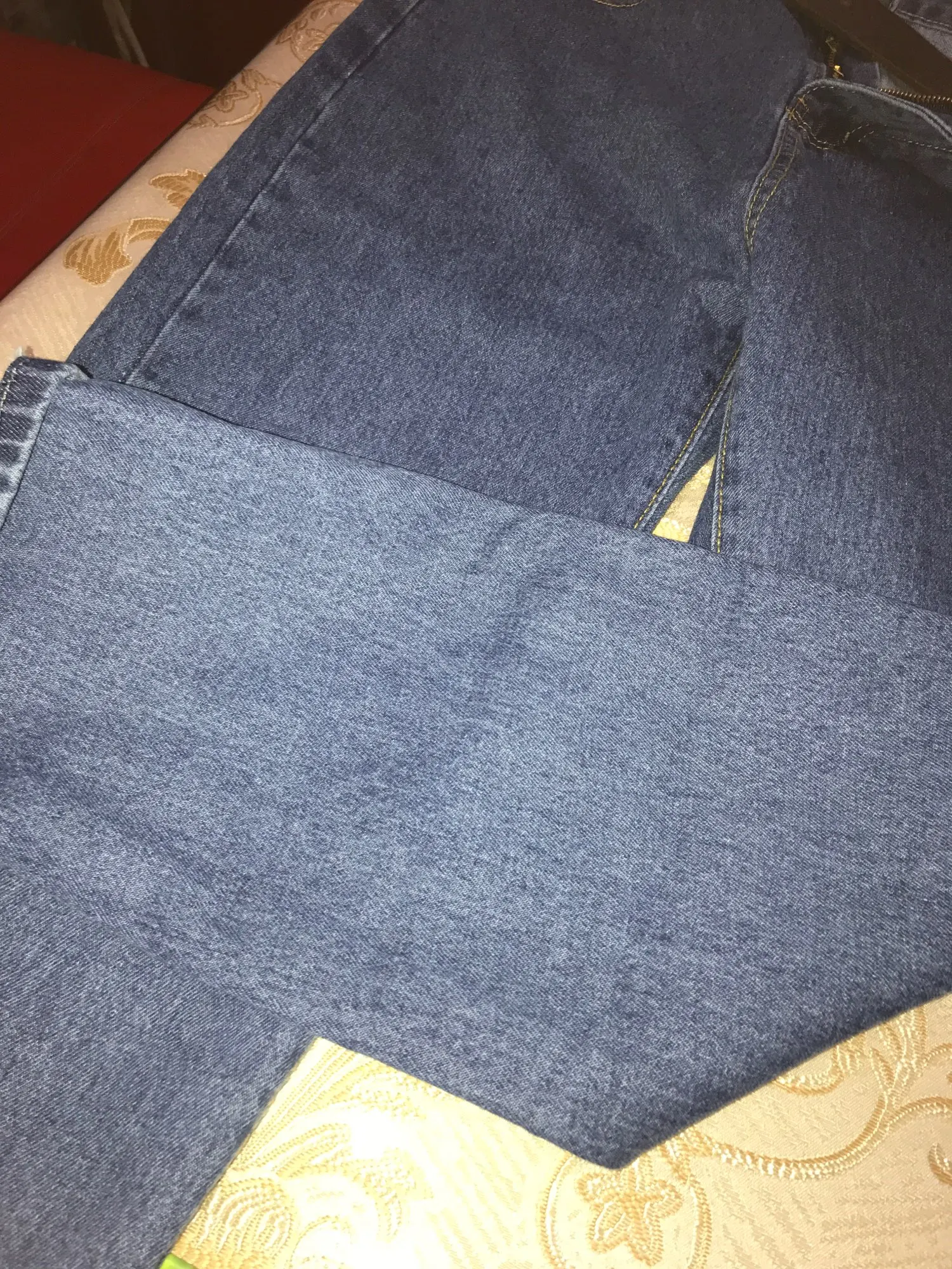 Офигенные джинсы, искал такие с июня, пришли за месяц. Немного широковаты в поясе, но с ремнем норм. После стирки полиняли, поэтому лучше стирать отдельно. Цвет после стирки сохранился:) *сорян за качество фоток снято на тапок деда