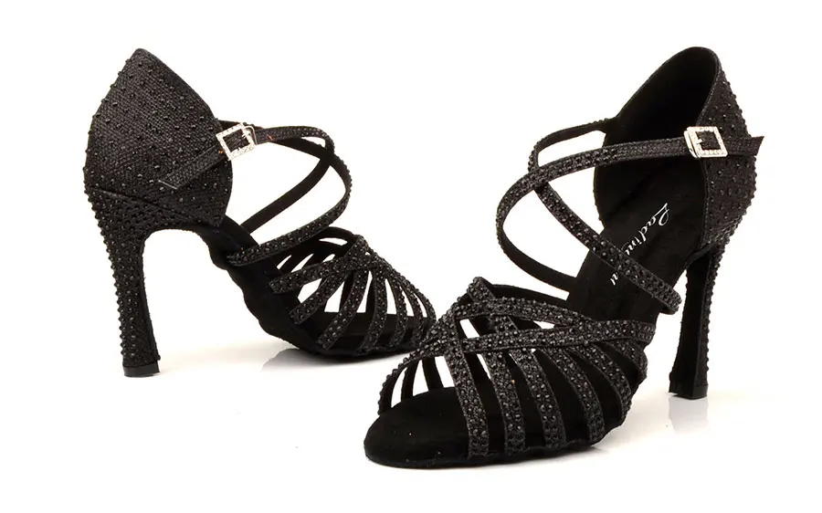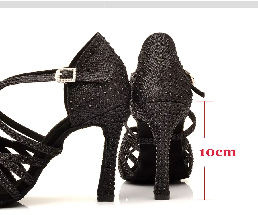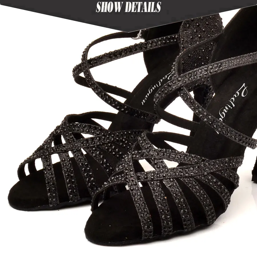 Женские туфли для латиноамериканских танцев, черные, стразы
