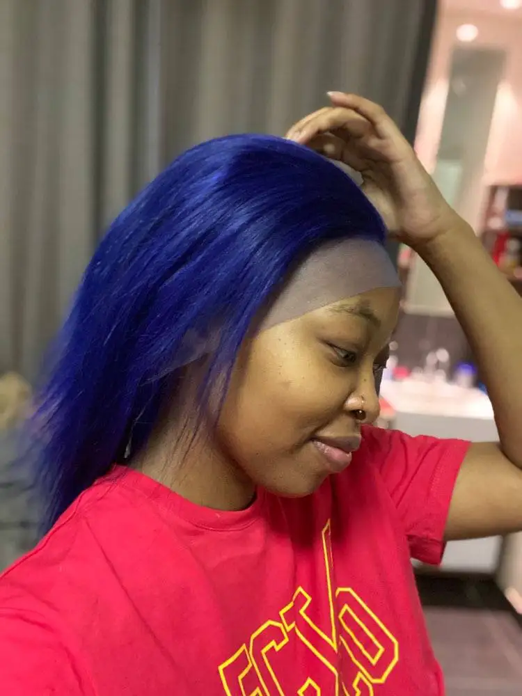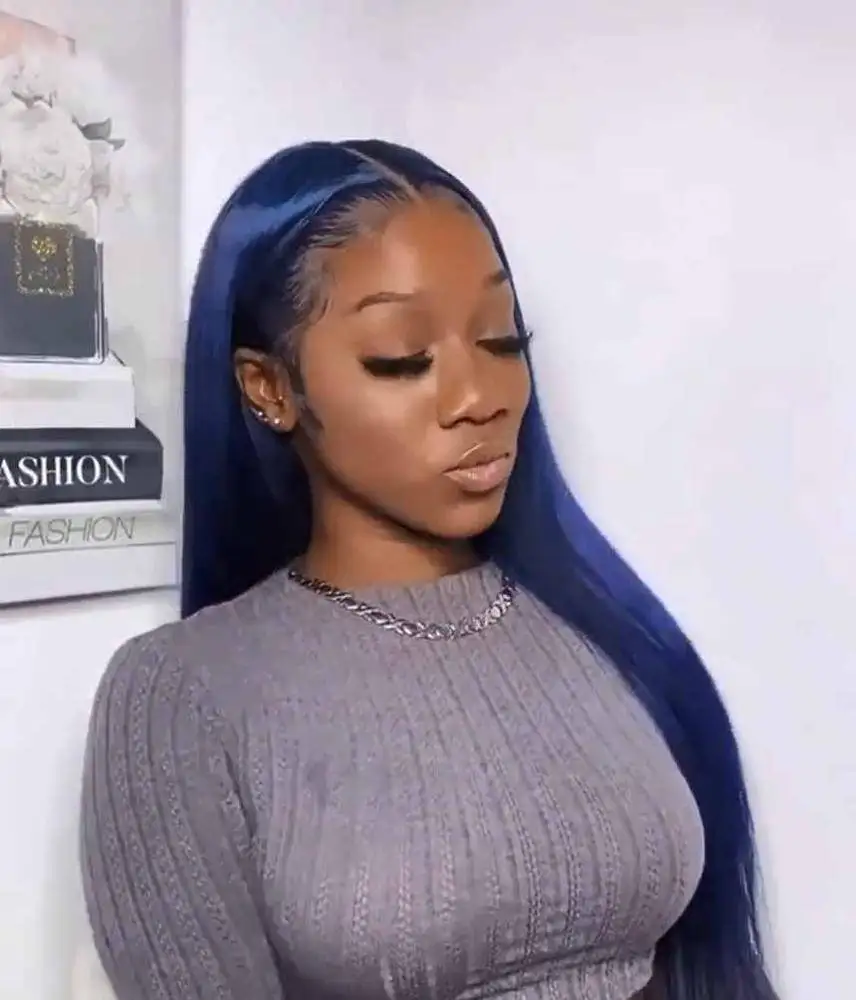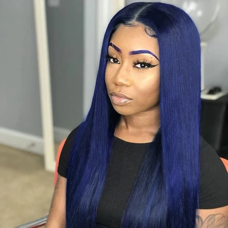 13x 4 парики из человеческих волос на сетке спереди темно-синего цвета 180% Плотность прямые бразильские человеческие волосы Remy Предварительно выщипанные T-образные парики на сетке