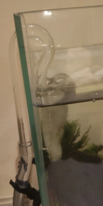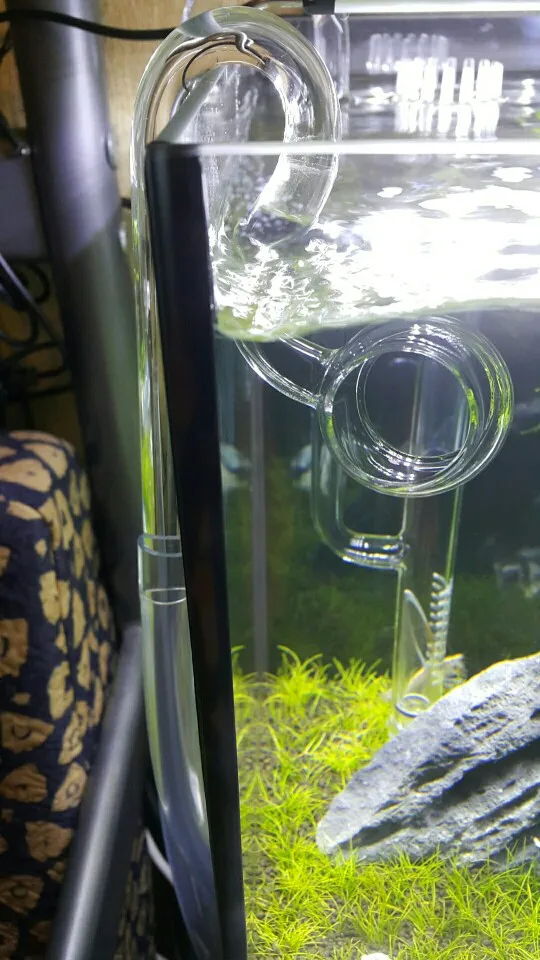 Вращающаяся труба стала здоровой. Я купил его, чтобы уменьшить мощность тока из-за Betta splendens, но ток все еще достаточно мощный. Обратите внимание, что вращающаяся труба просто крепится на аквариумное стекло. В комплект не входят присоски.